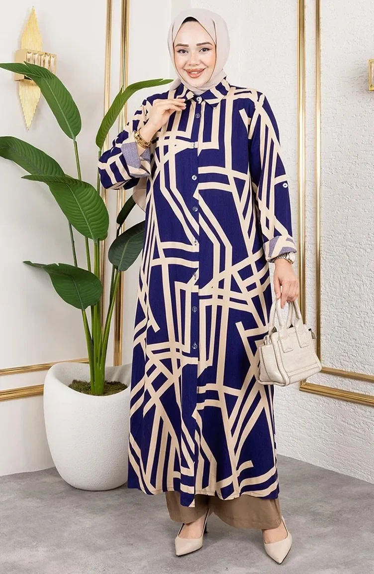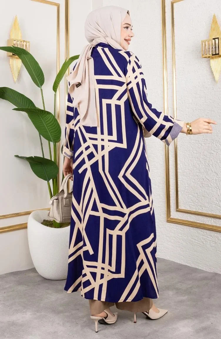 بدلة فيسكوز منقوشة 0337-01 أزرق داكن 0337-01