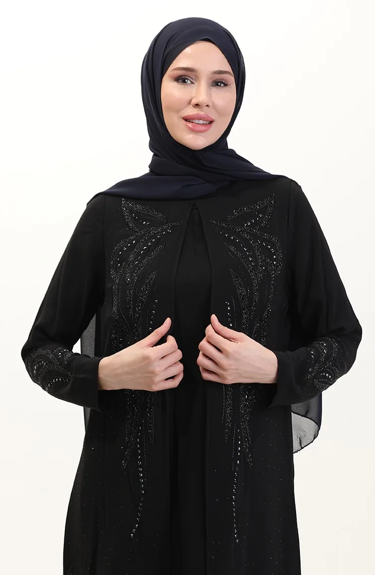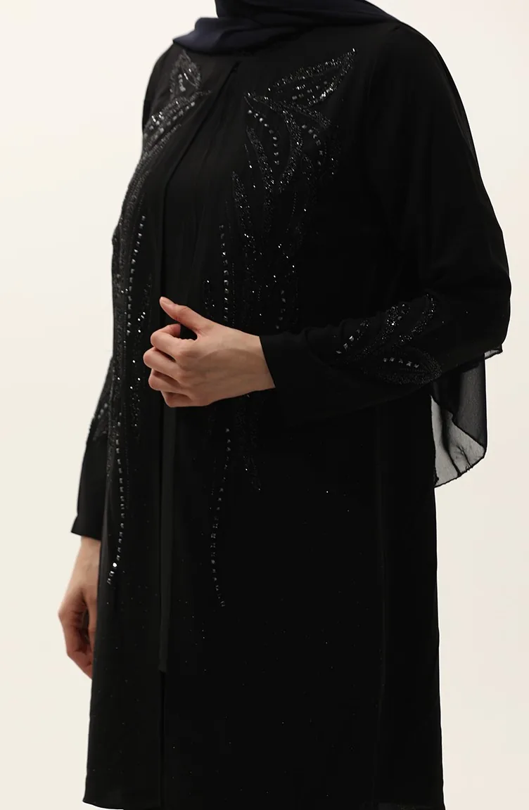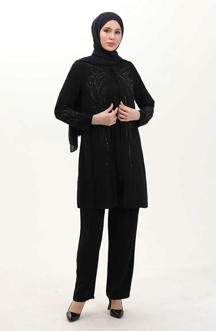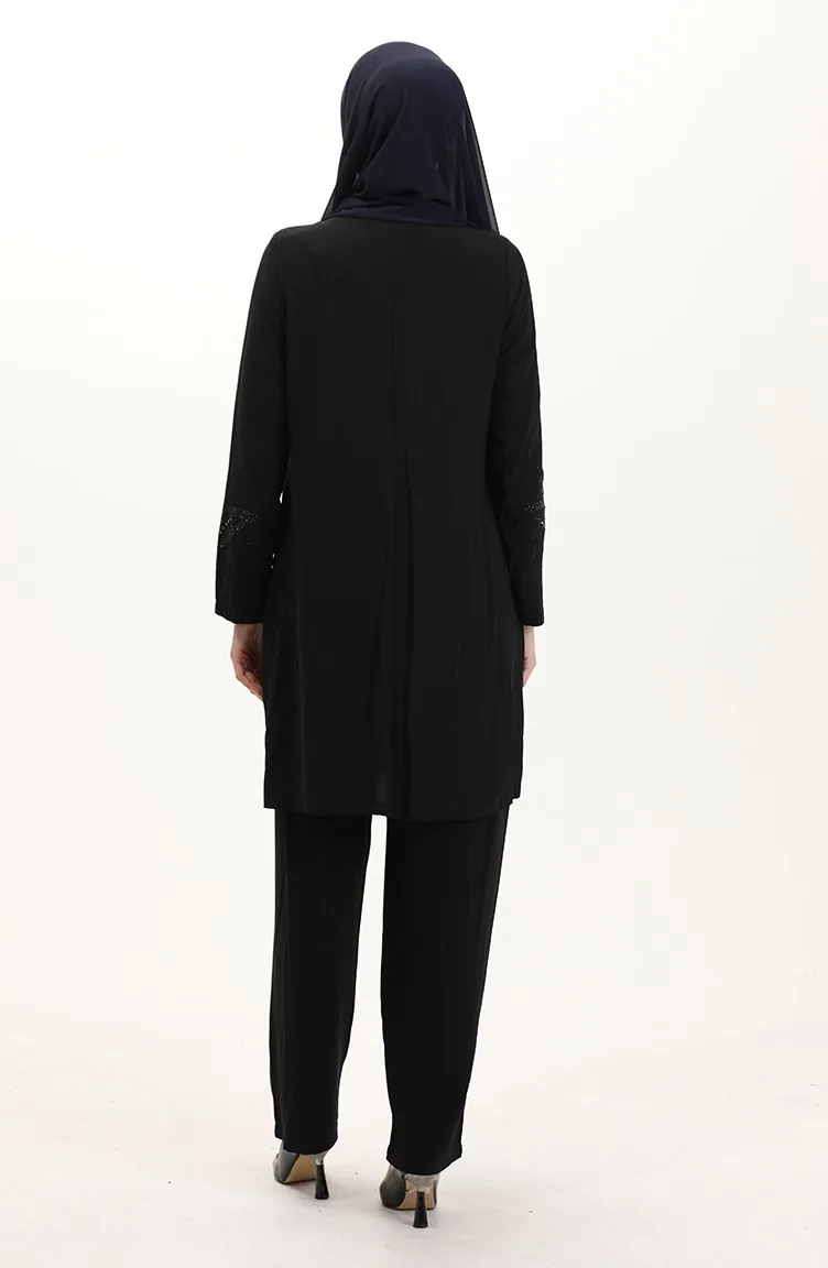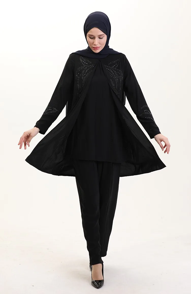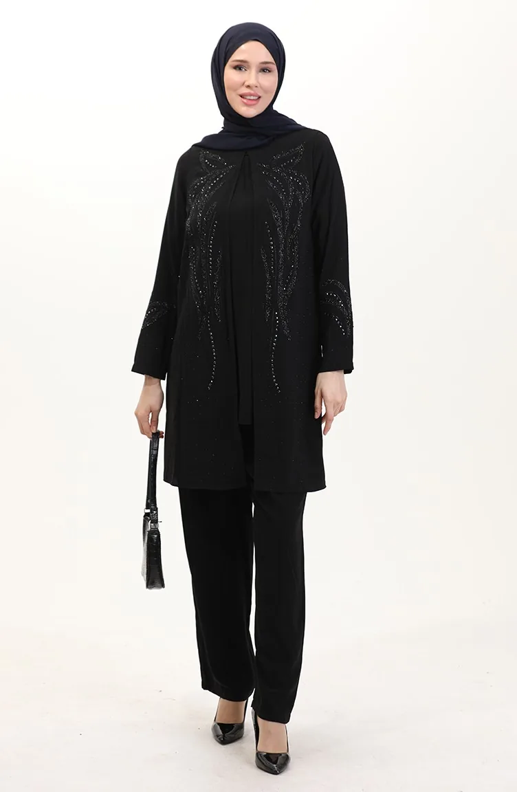 طقم تونيك وبنطلون بمقاس كبير من قطعتين 6210-01 أسود 6210-01