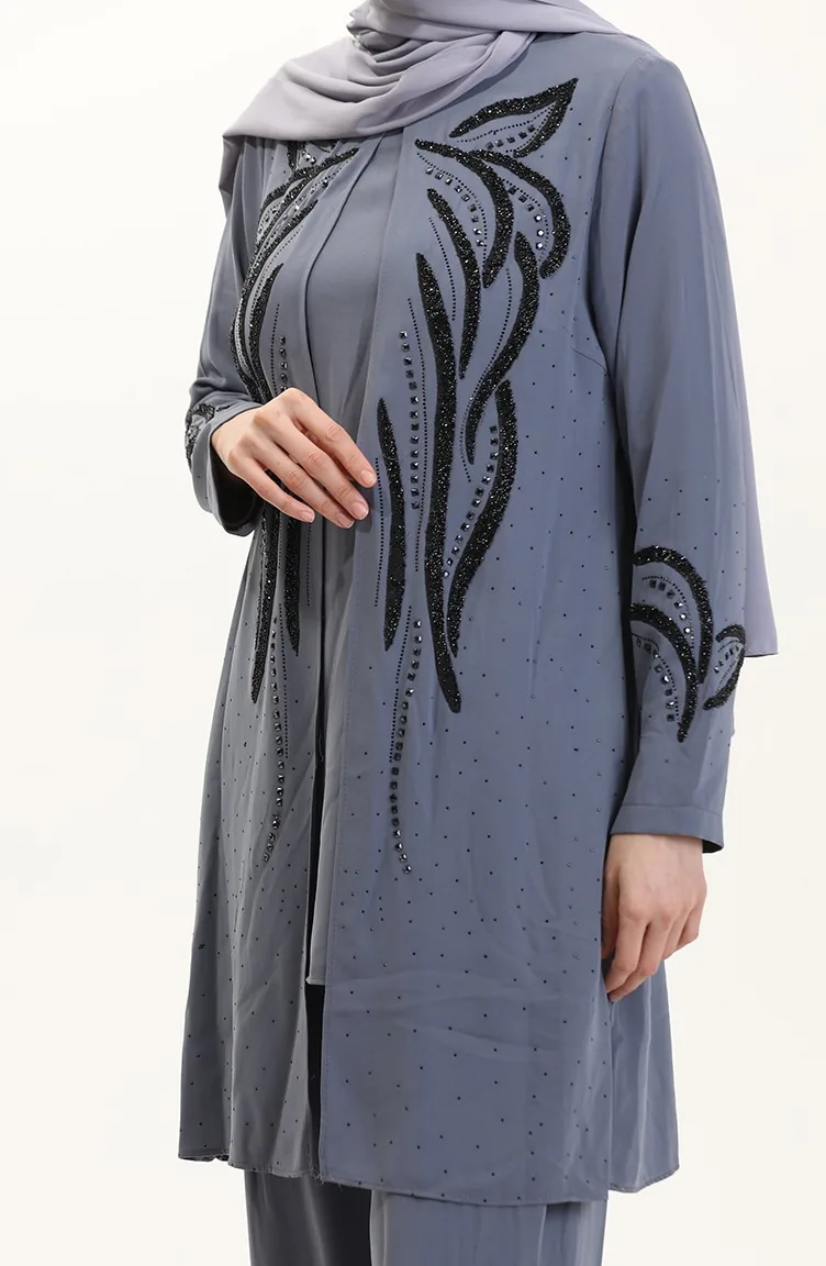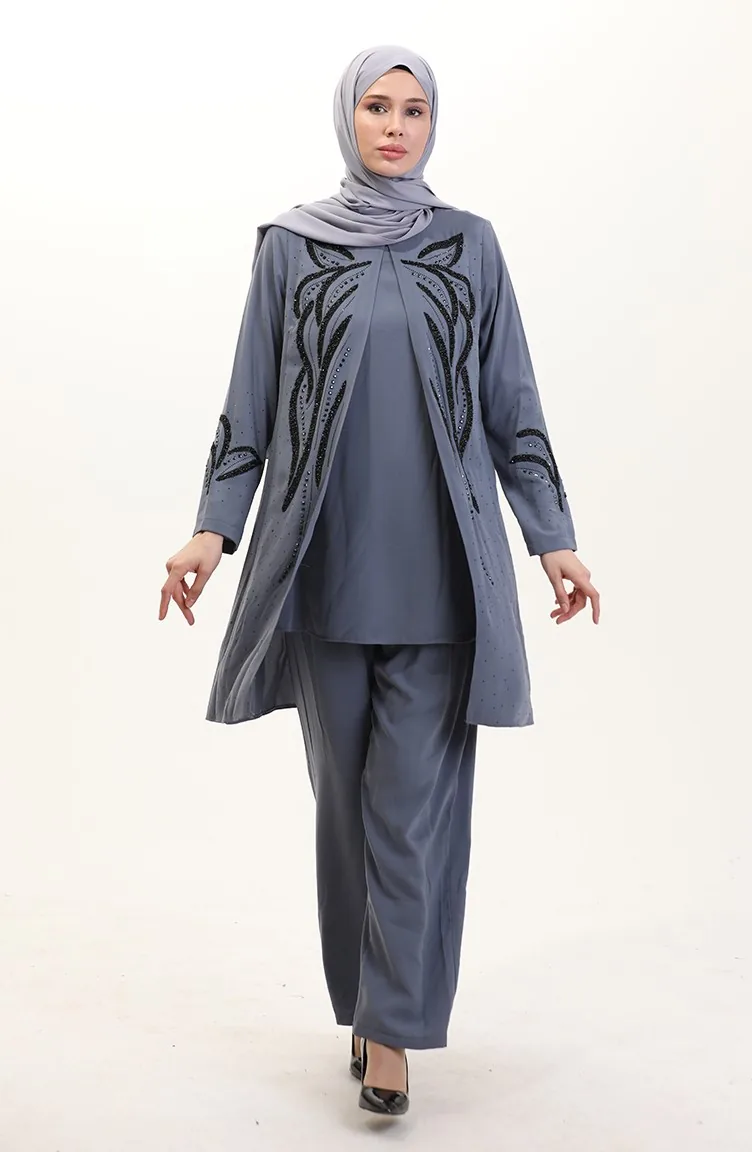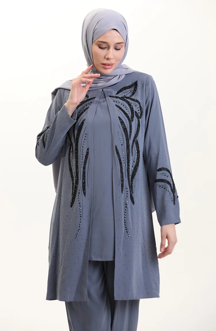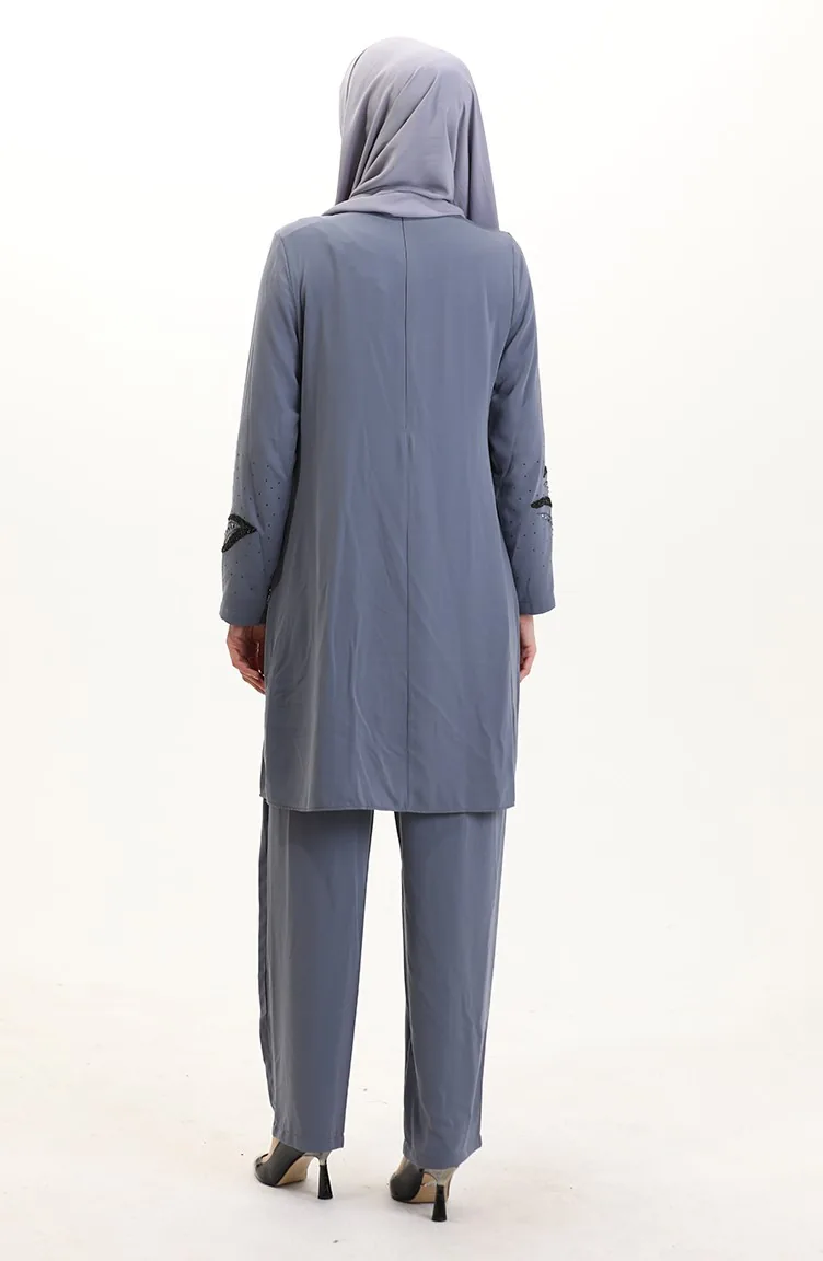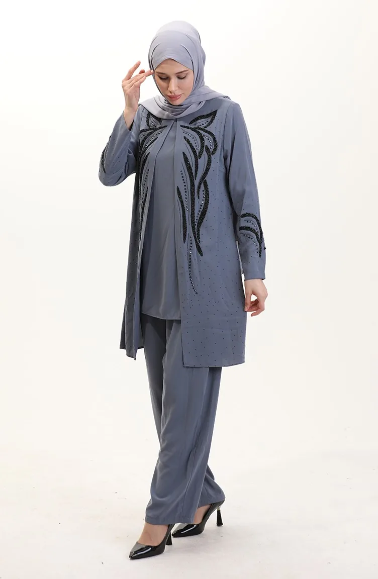 بدلة تونيك بنطلون مقاس كبير من قطعتين 6210-02 رمادي 6210-02