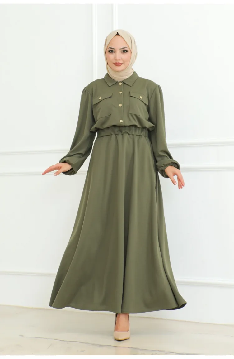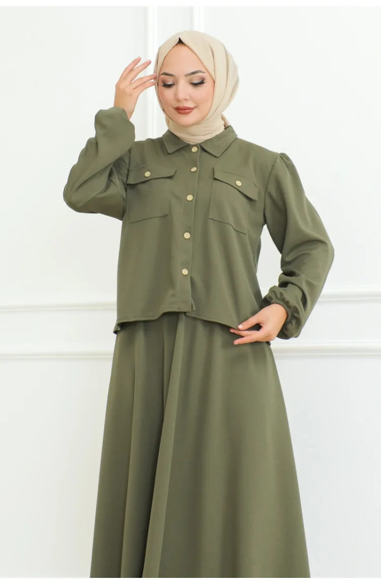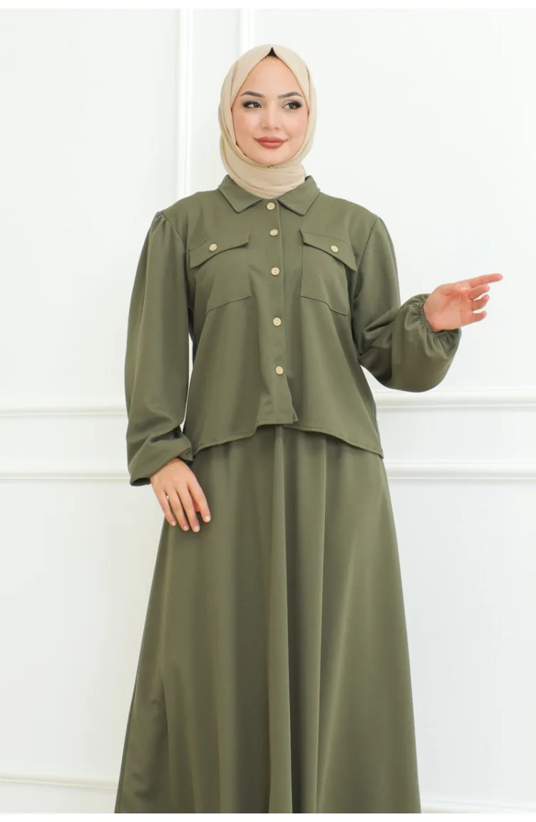 بدلة حجاب بتصميم تنورة 2091-03 لون كاكي 2091-03