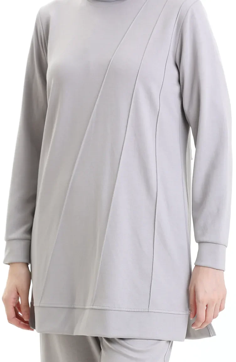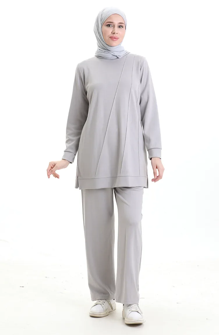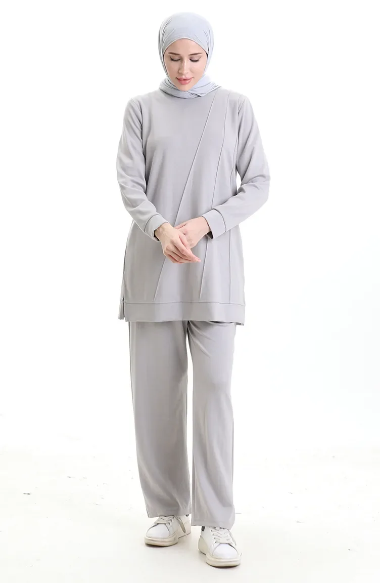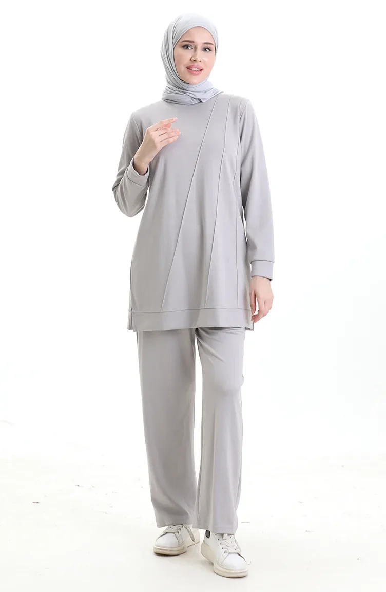 بدلة رياضية مكونة من قطعتين بخياطة مشقوقة 20051-01 رمادية 20051-01