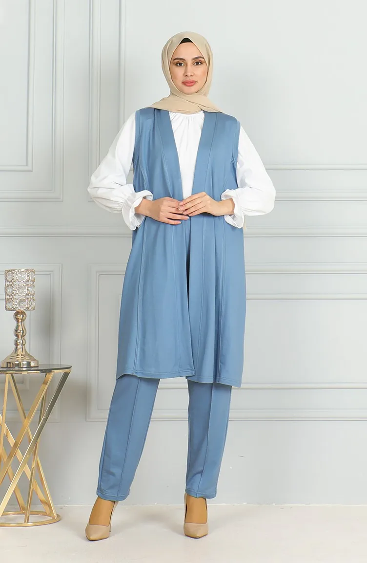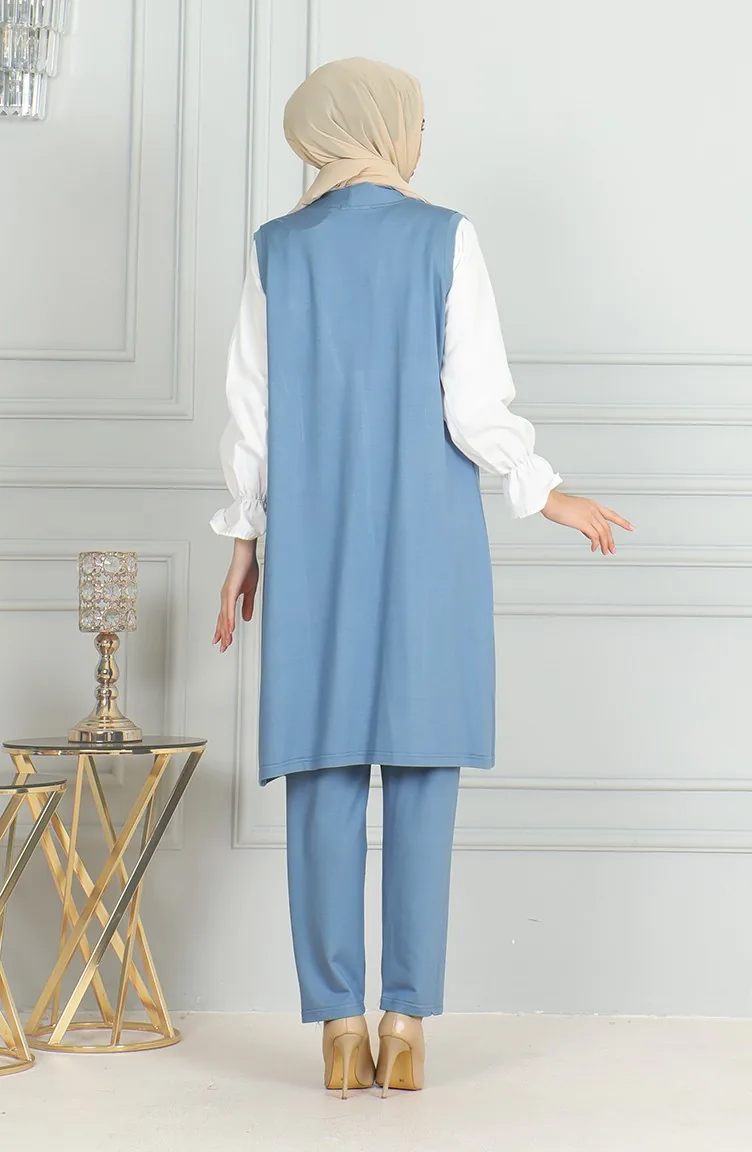 طقم ثنائي سترة بدون أكمام بنطلون 20046-01 أزرق 20046-01