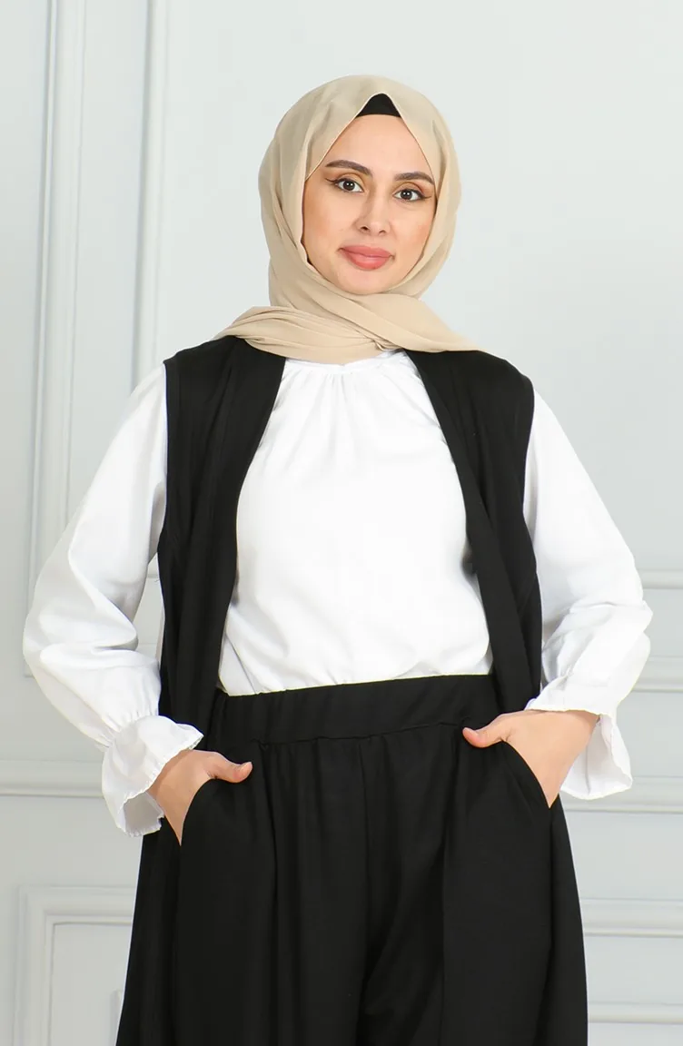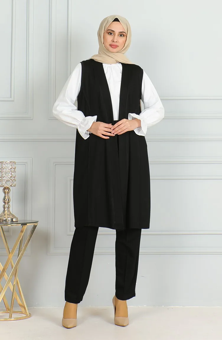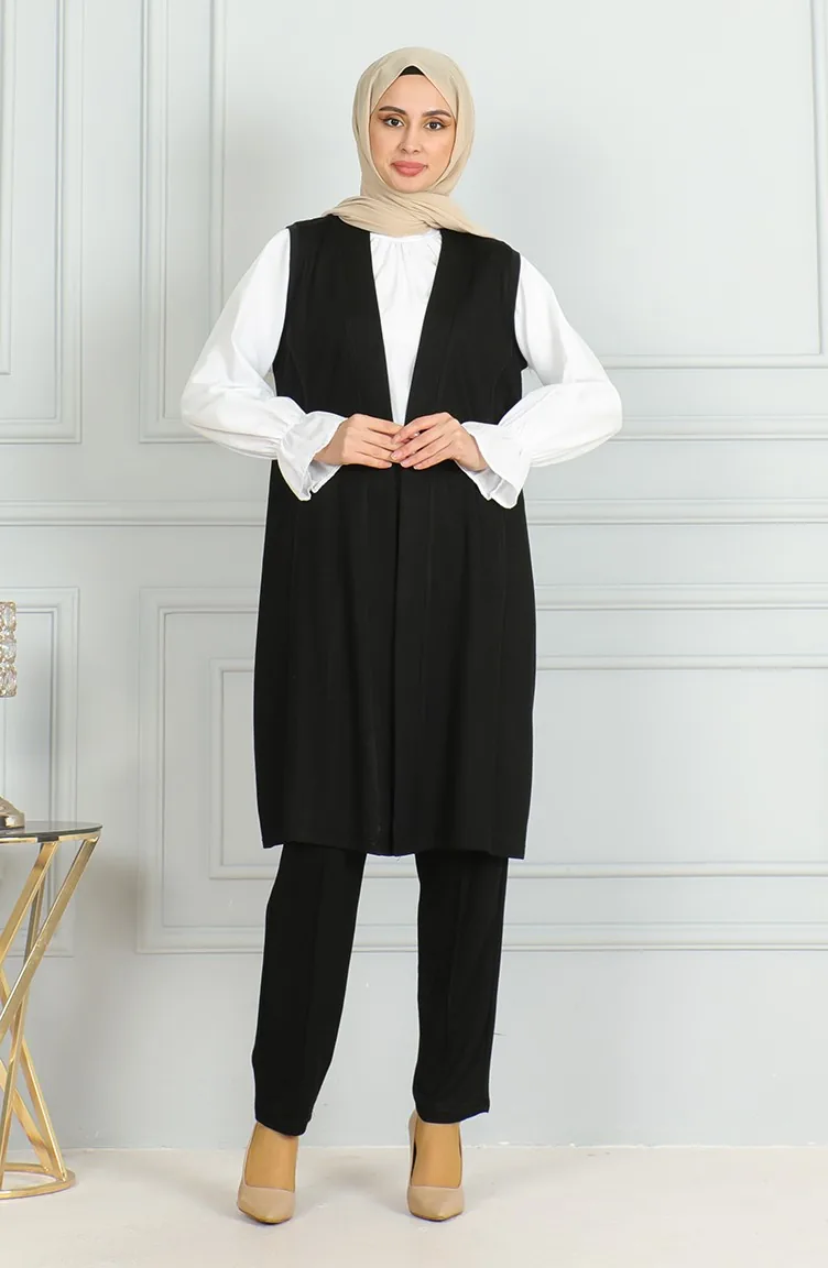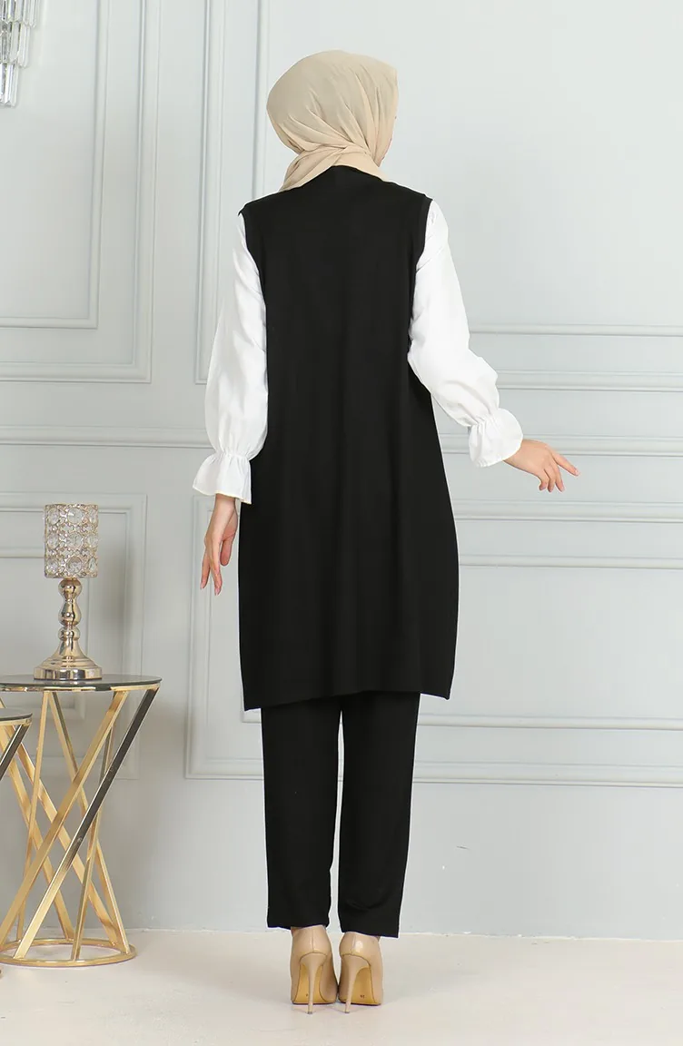 طقم ثنائي سترة بدون أكمام بنطلون 20046-04 أسود 20046-04