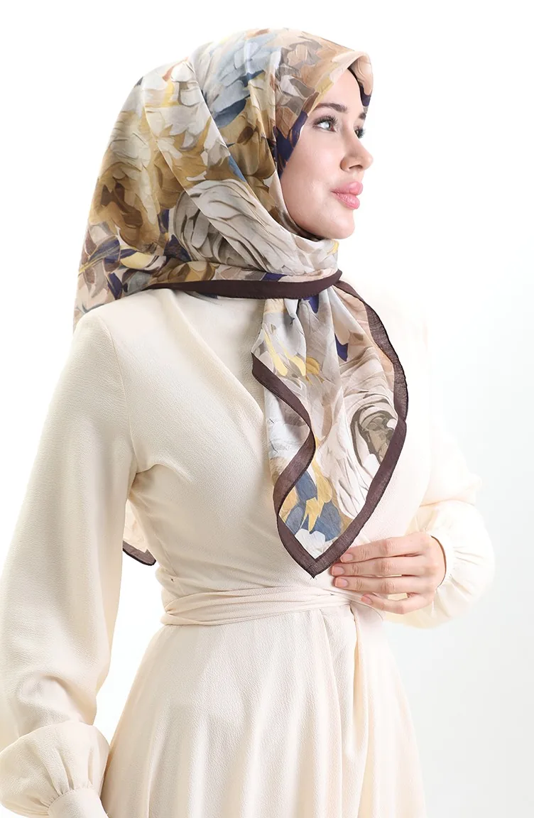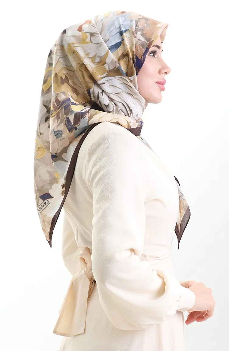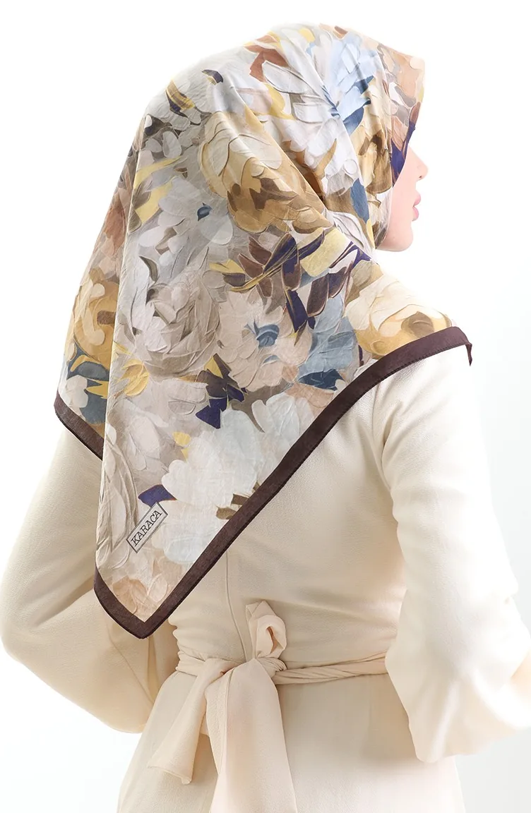 وشاح كاراكا من الألياف الطبيعية بنقوش زهرية 82017-09 بني برلماني 82017-09