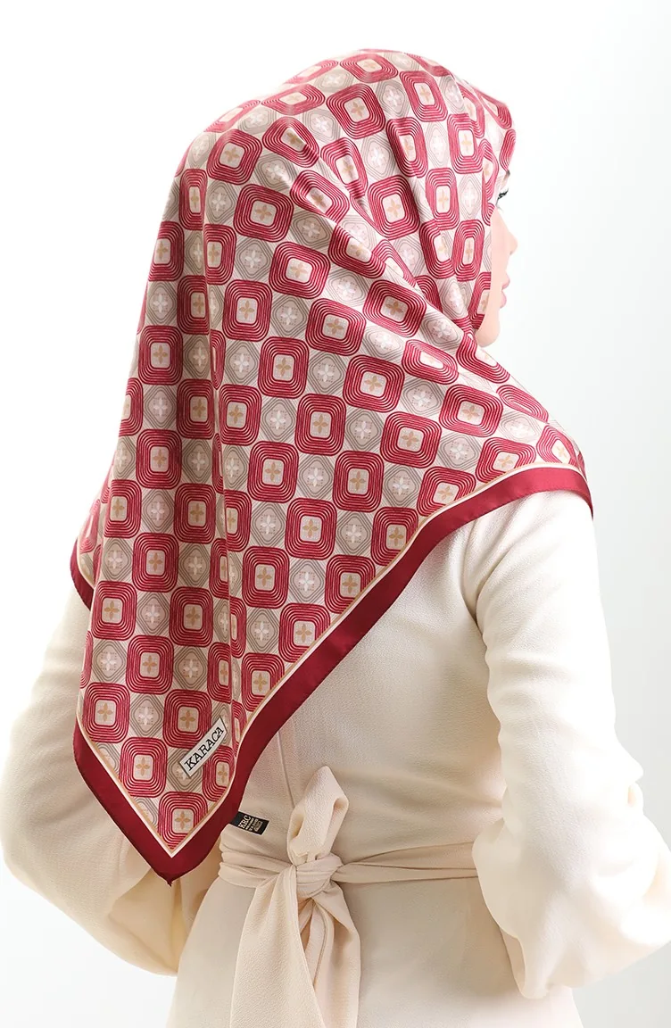 وشاح كاراكا من الرايون بنقشة هندسية 82021-10 من المنك العنابي 82021-10