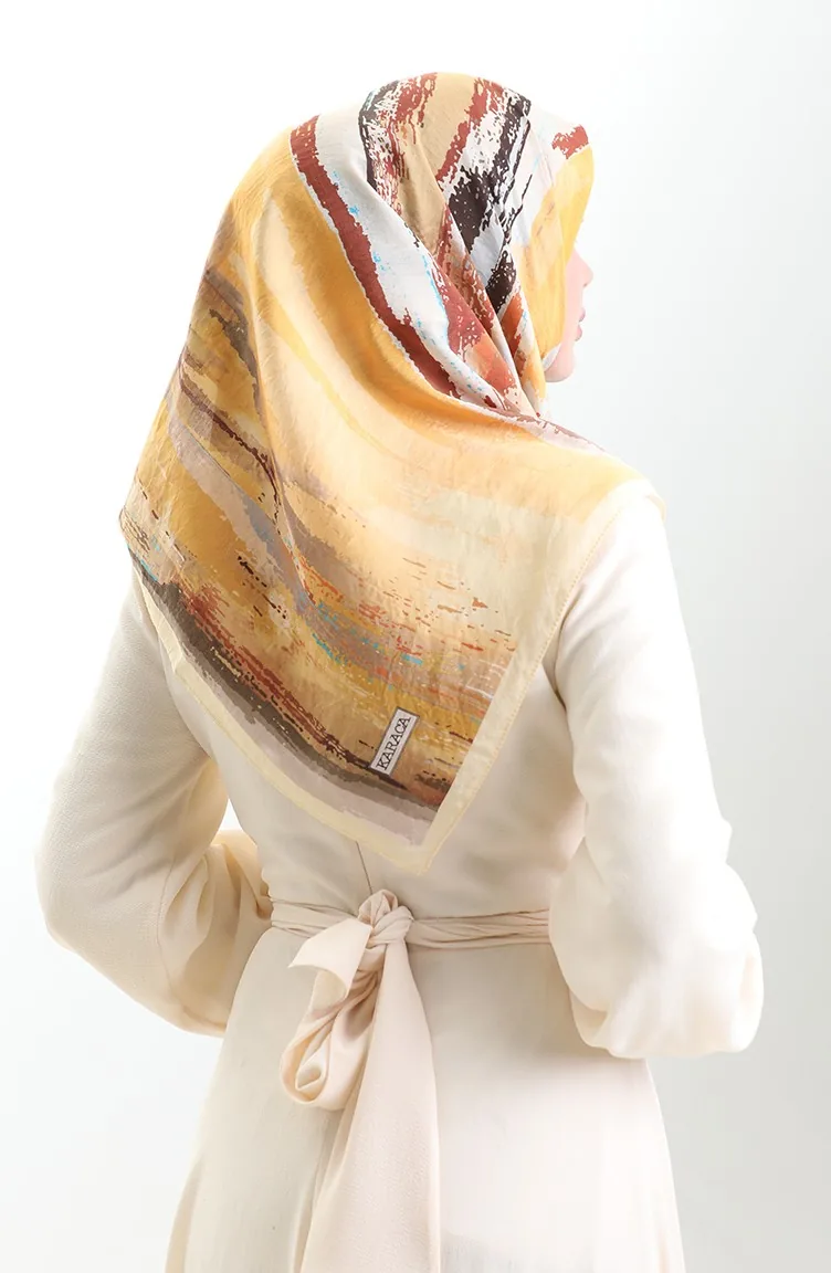 وشاح كاراجا من الألياف الطبيعية المنقوشة 82019-02 أصفر بني 82019-02
