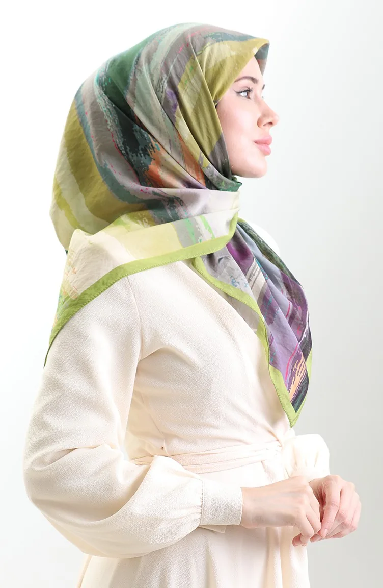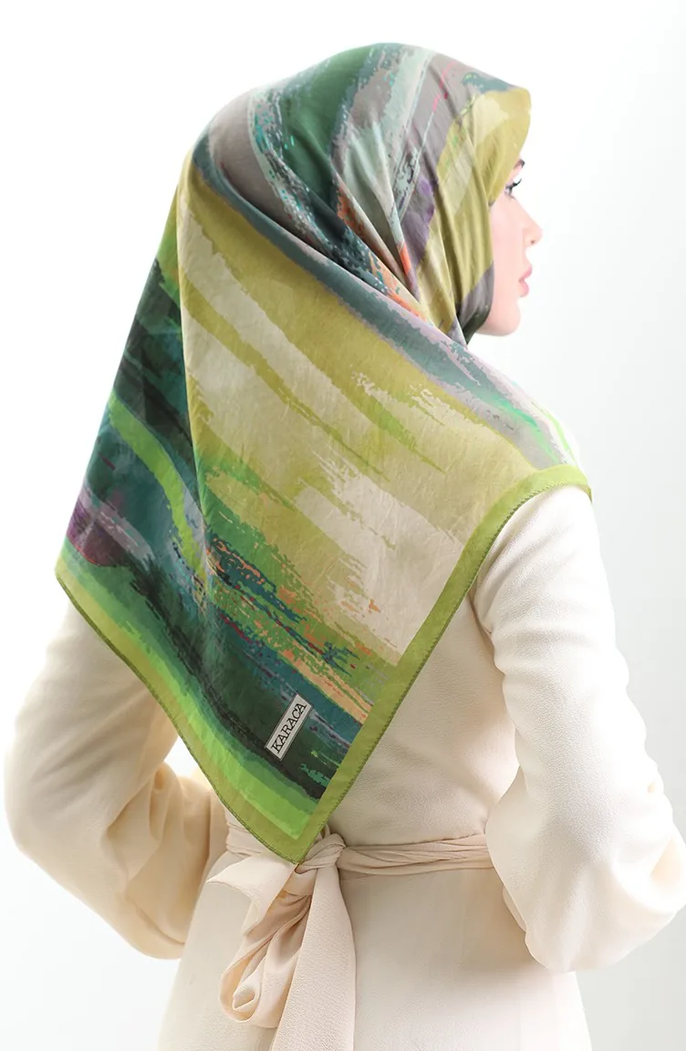 وشاح كاراجا من الألياف الطبيعية المنقوشة 82019-06 أخضر زيتي فستقي أخضر 82019-06