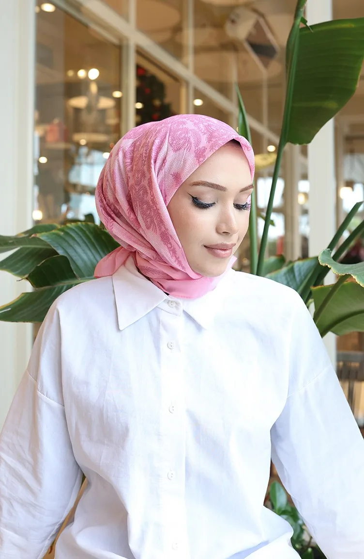 وشاح شرنقة قطني منقوش 70337-03 وردي 70337-03