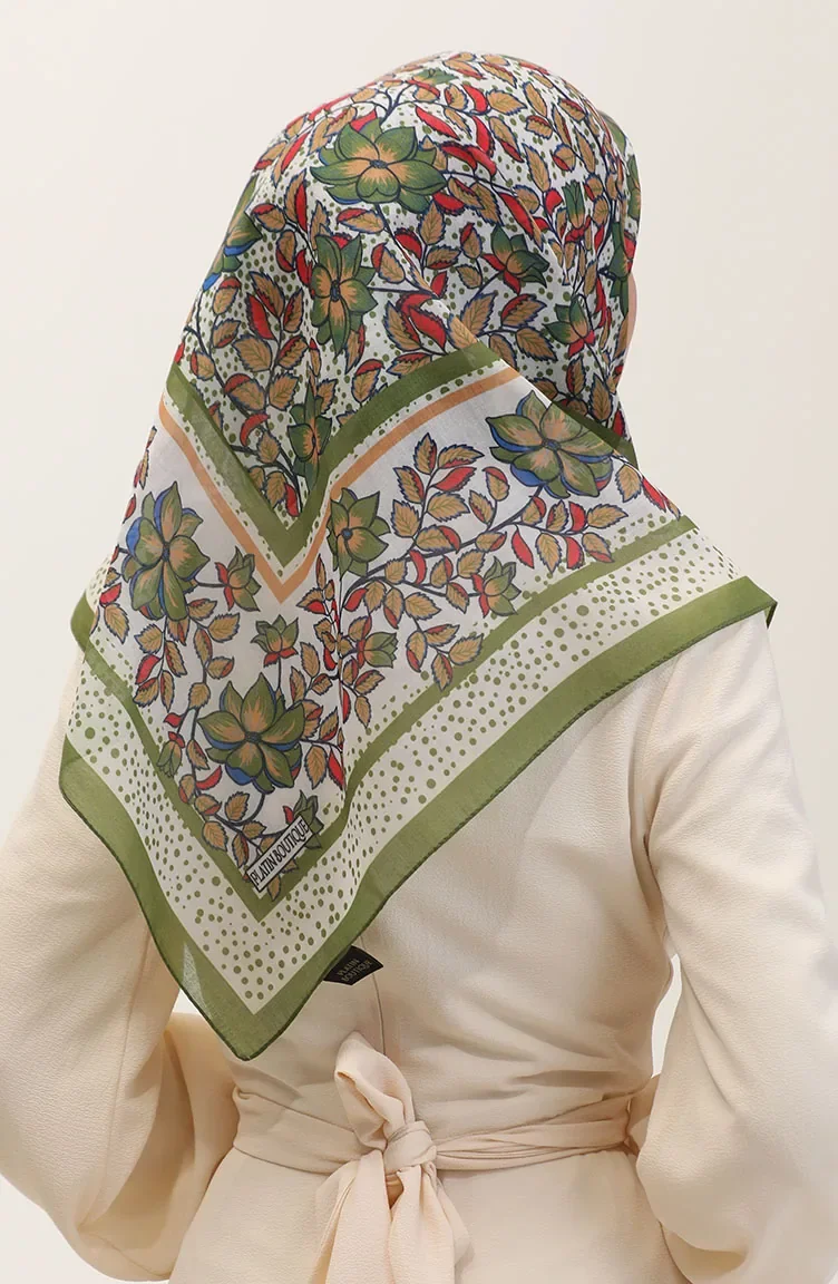 وشاح قطني منقوش 2075-08 حناء أخضر أحمر 2075-08