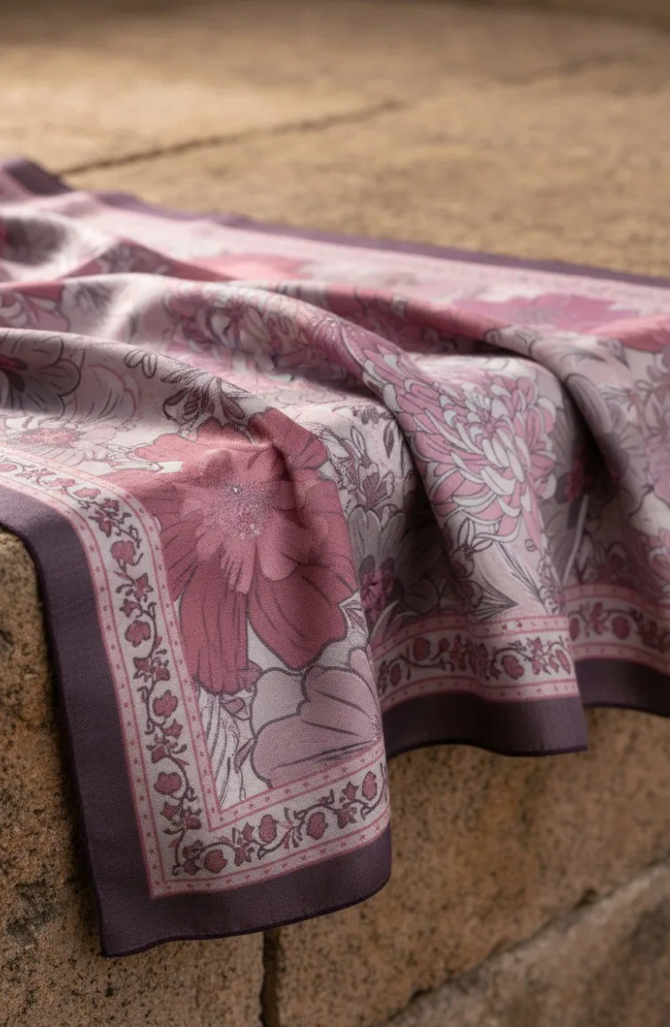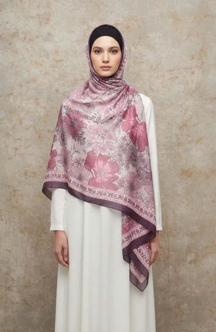 وشاح كهرماني بنقشة زهور 70358-09 لون برقوقي 70358-09