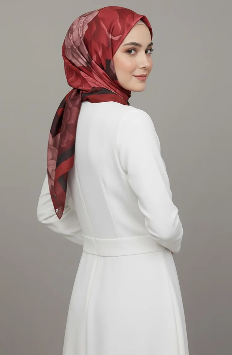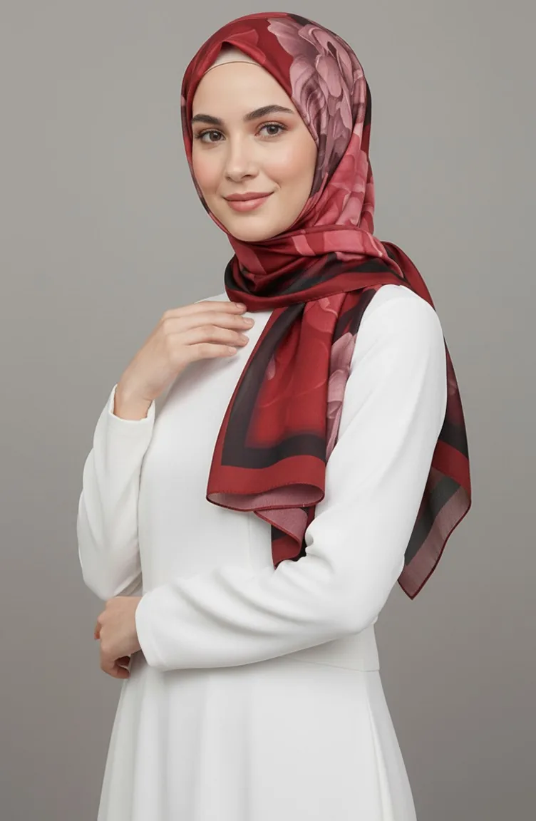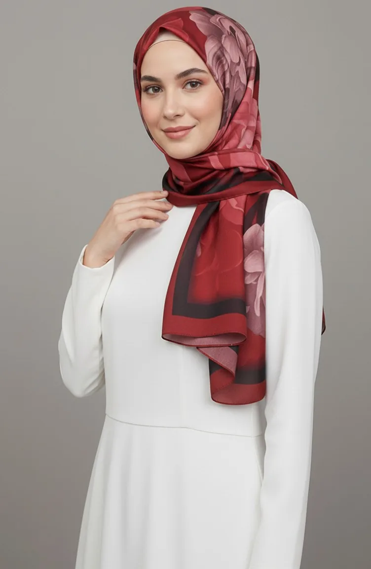 وشاح بنقشة زهور 1015-06 بورغندي 1015-06