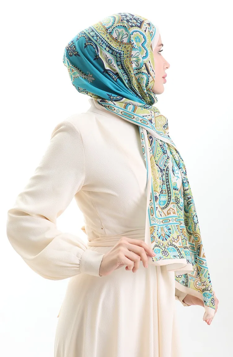 شال كاراكا القطني 82007-04 سلمون نعناعي أزرق 82007-04
