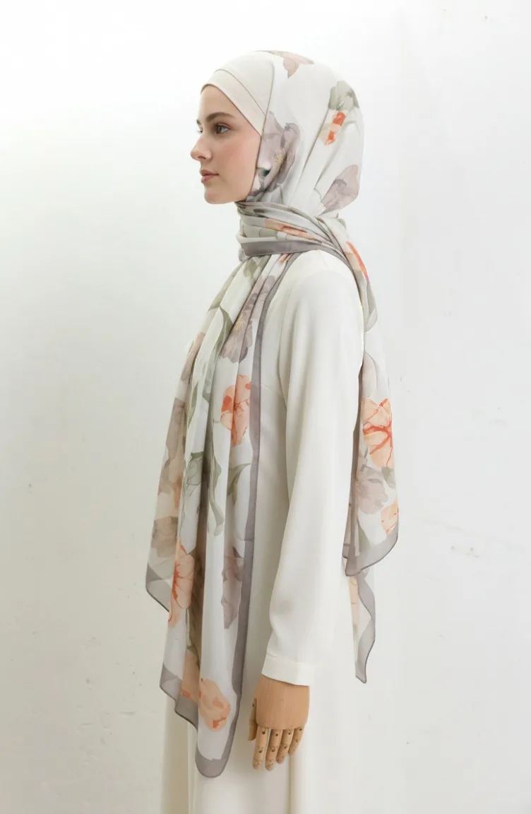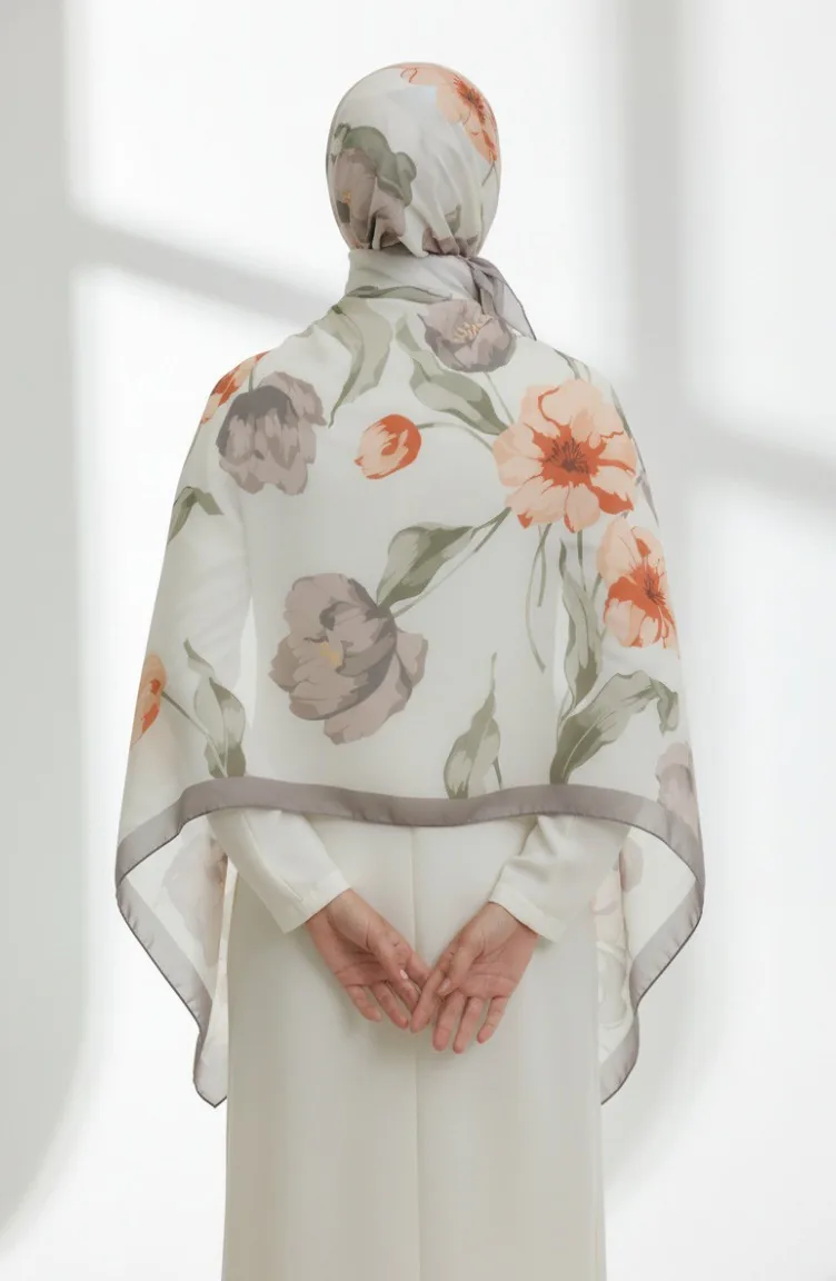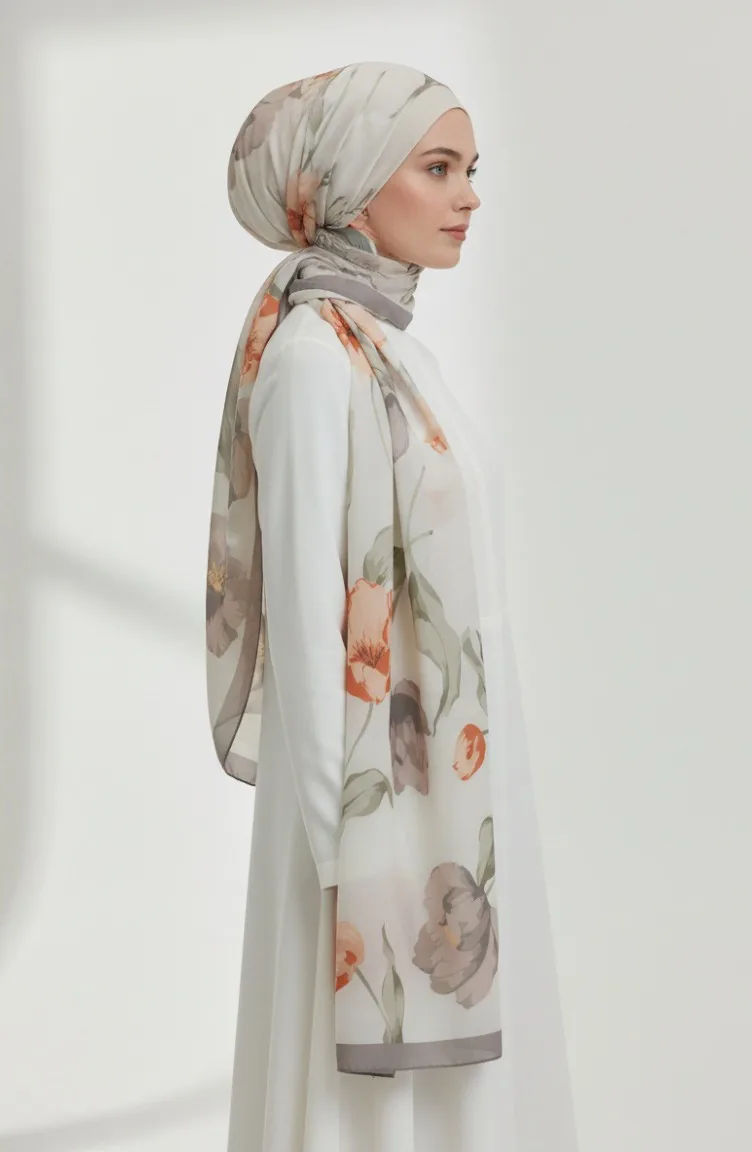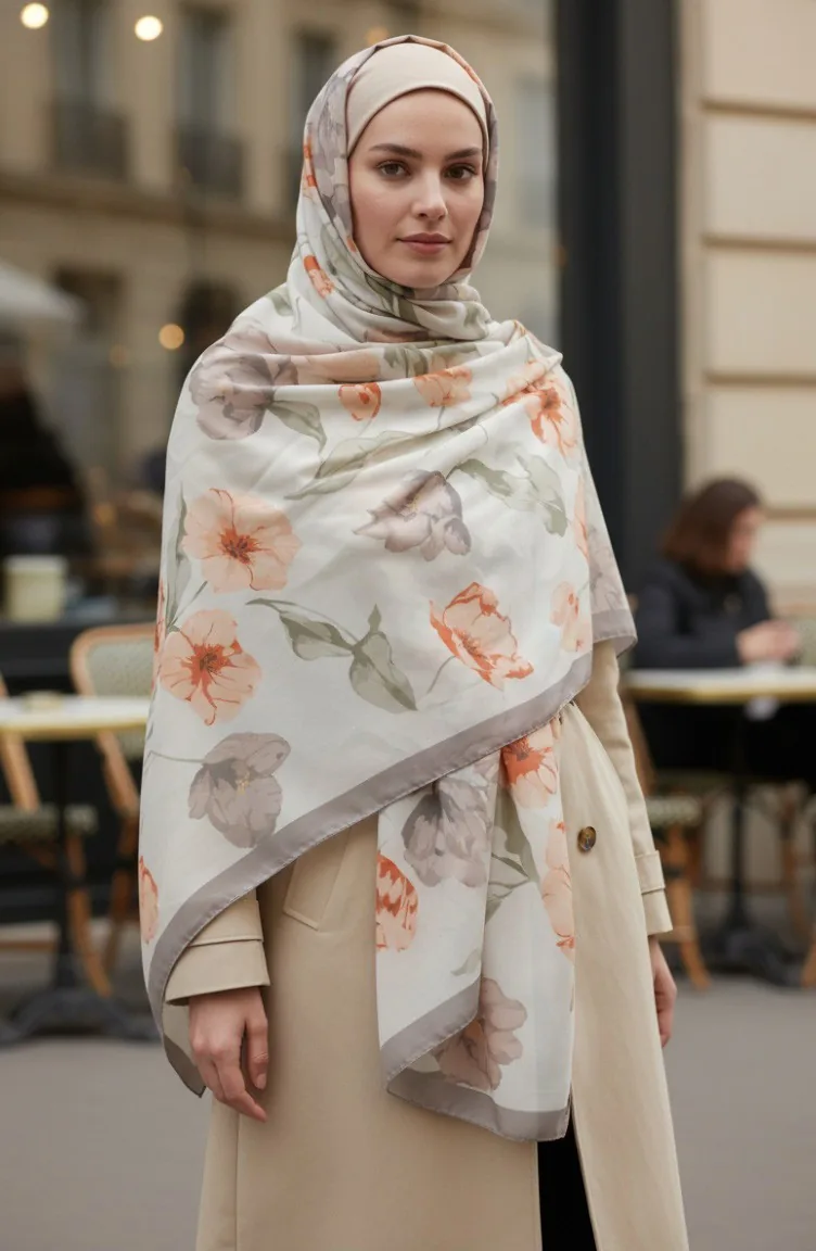 شال منقوش 1008-04 لون المنك والطين المحروق 1008-04