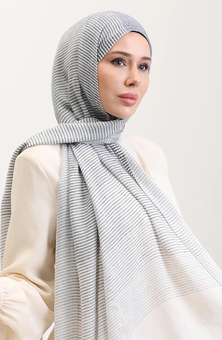 شال كتان مخطط منقوش 70286-05 أسود 70286-05