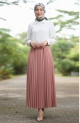 تنورة مطوية بخصر مطاطي 0213-03 أزرق داكن 0213-03