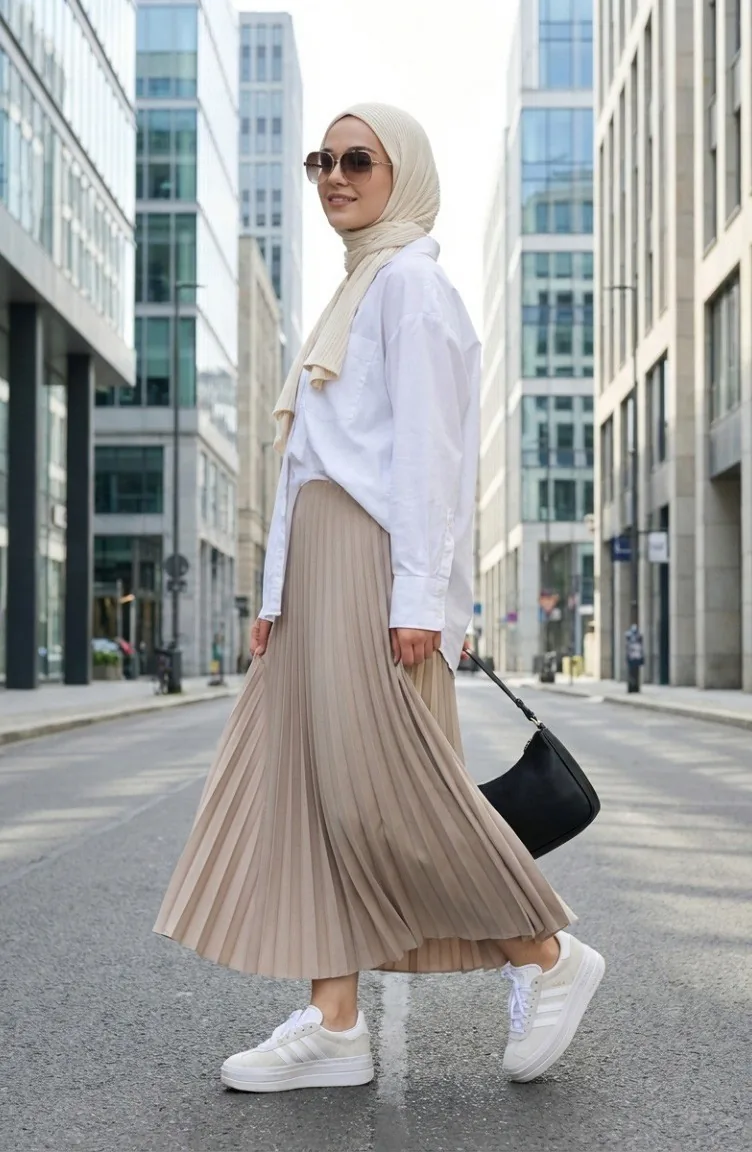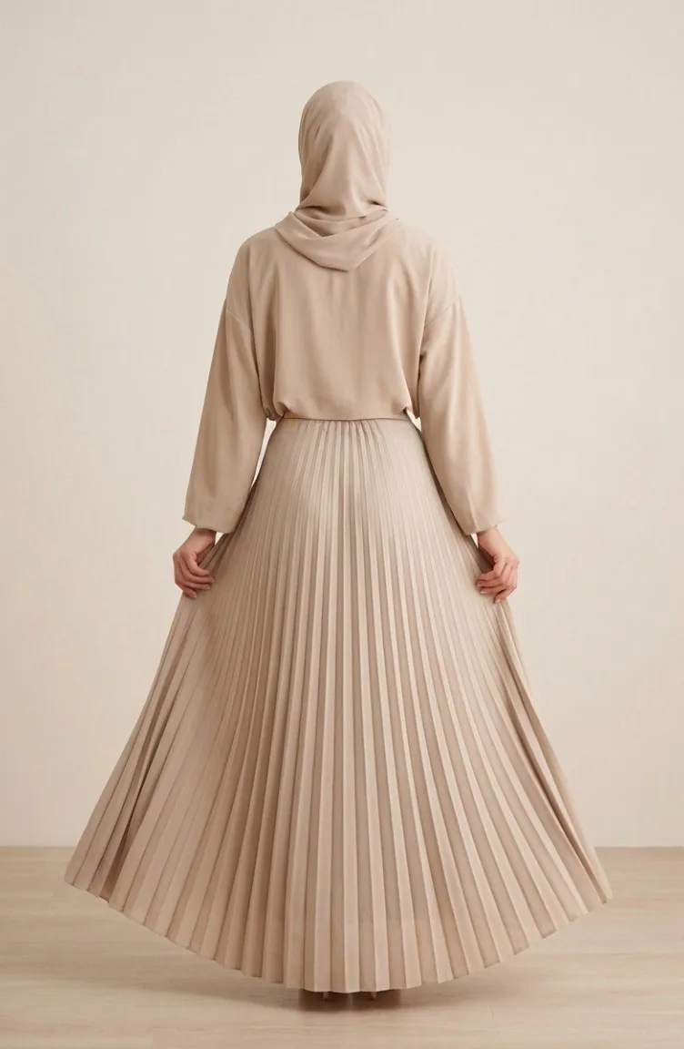 تنورة بكسرات وخصر مطاطي 0213-12 لون المنك 0213-12