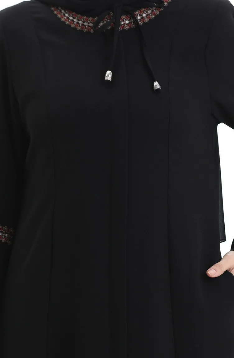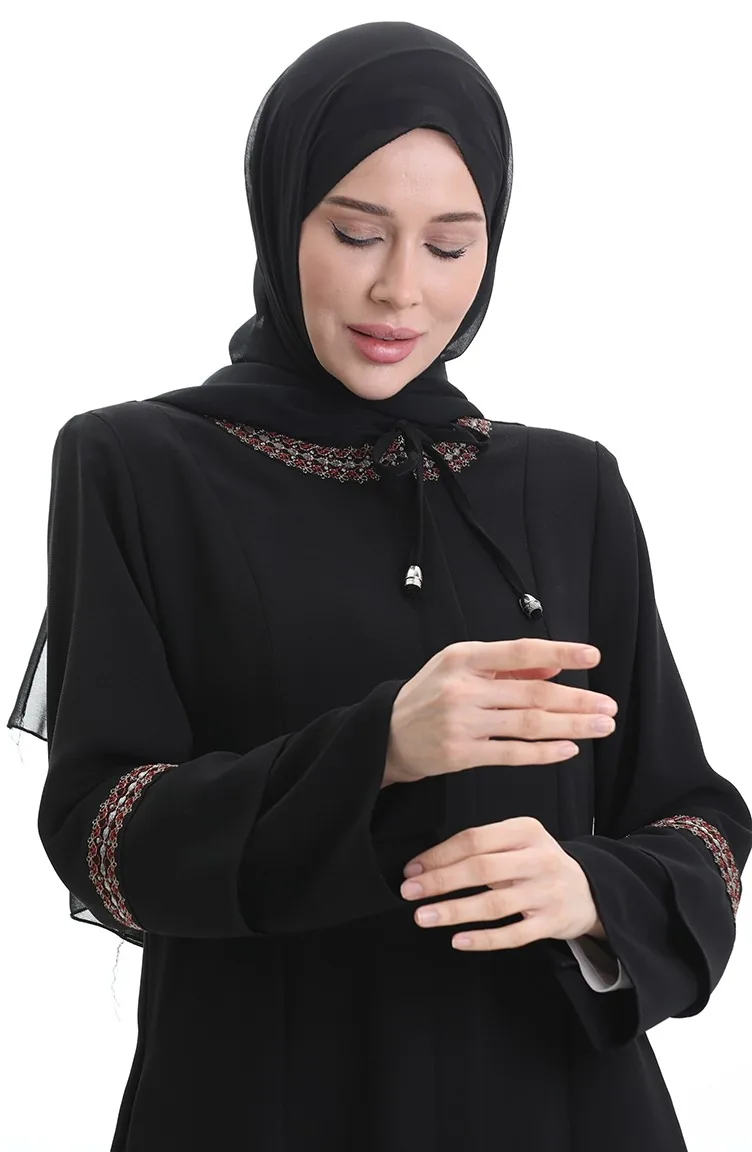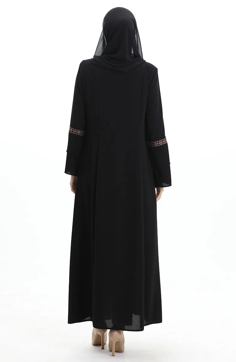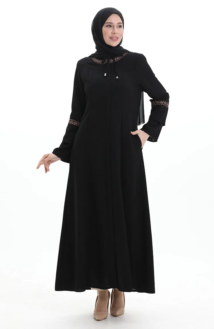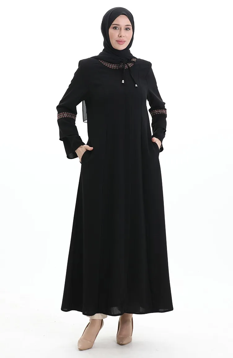 عباية مطرزة بمقاسات كبيرة مع سحاب مخفي 6193-01 أسود 6193-01