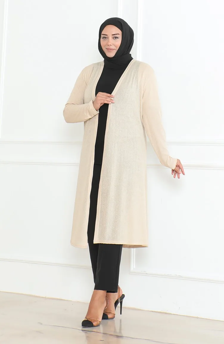 كارديجان طويل موسمي مقاس كبير 8740-02 بيج 8740-02