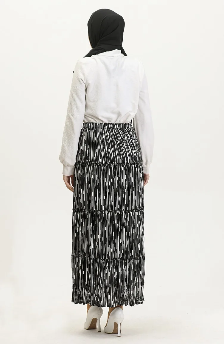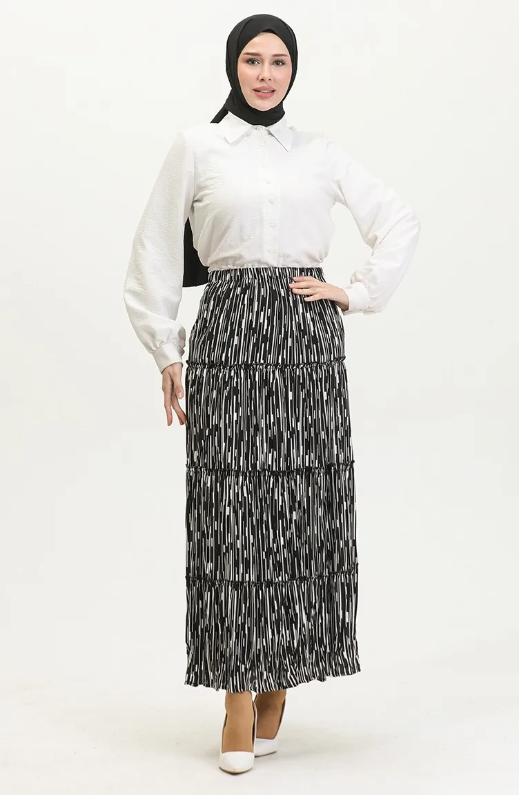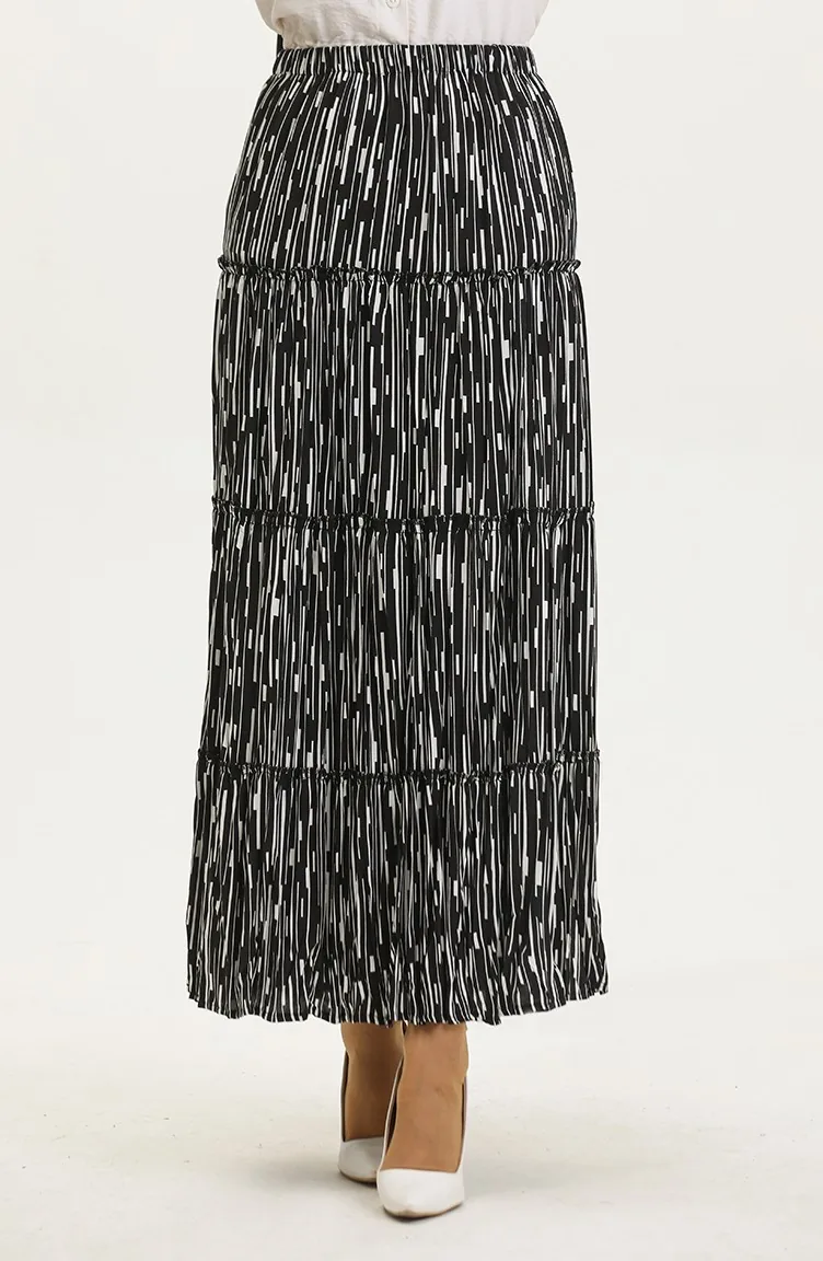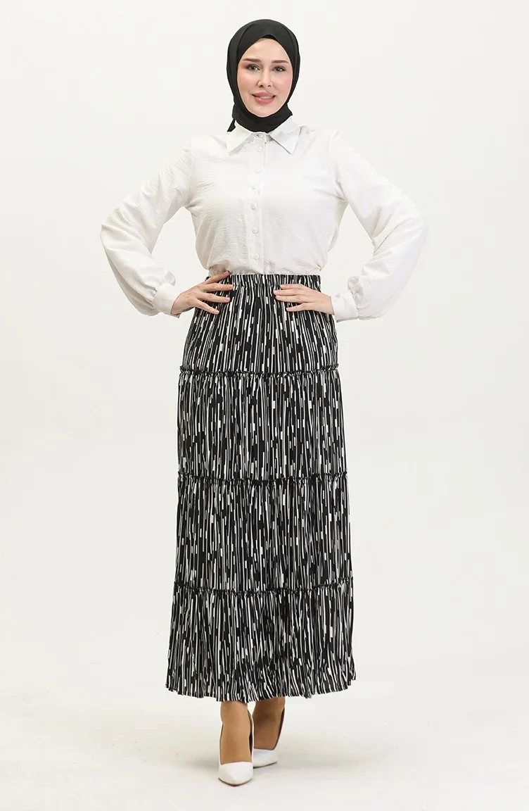 تنورة ألميلا غجرية من الفيسكوز 3161-06 أسود وأبيض 3161-06