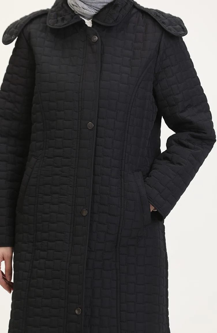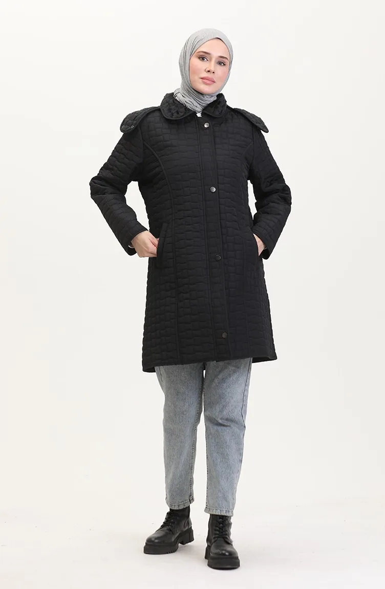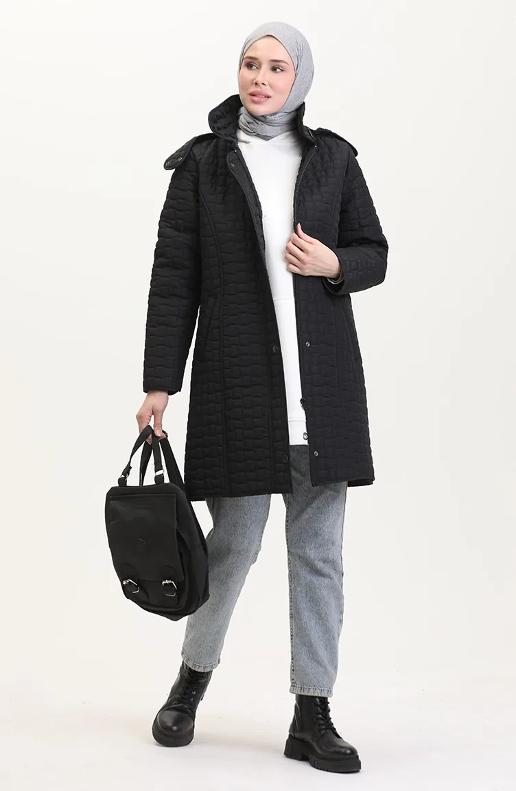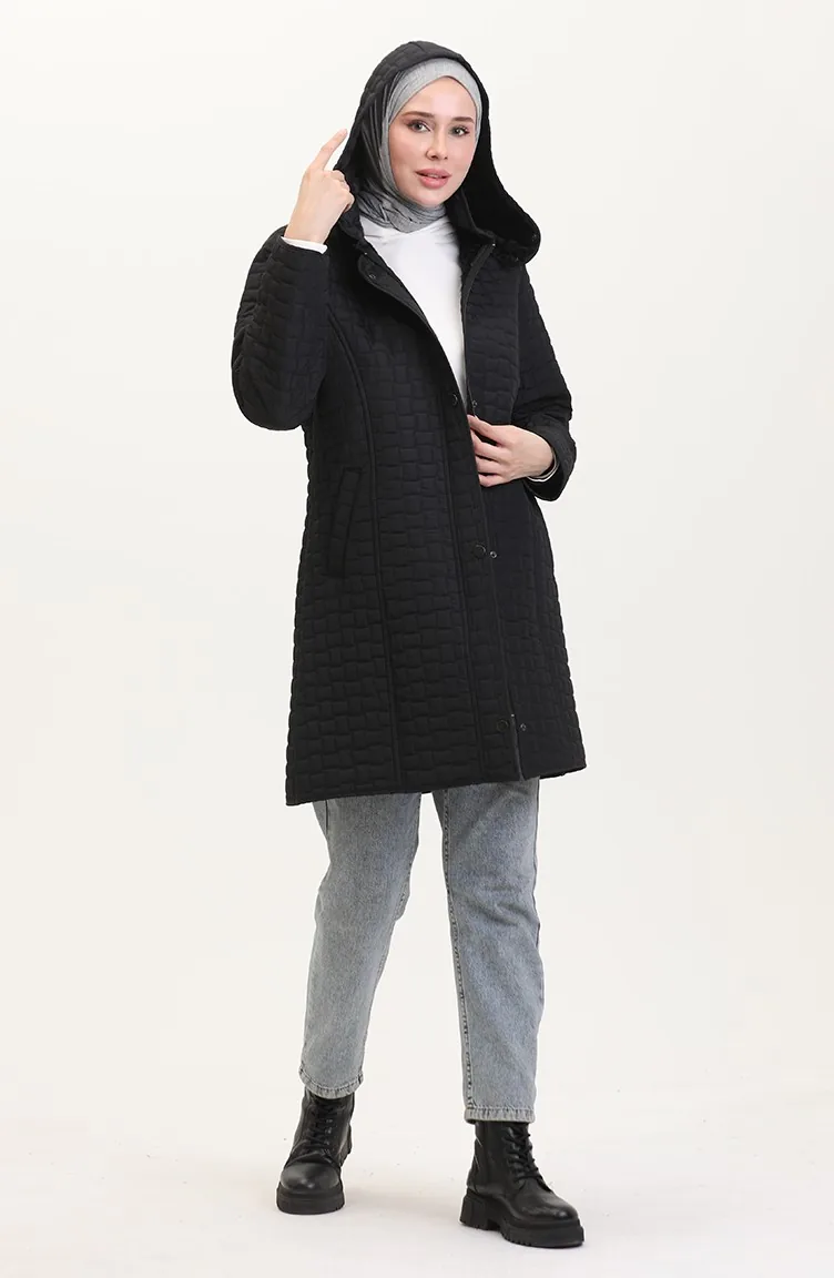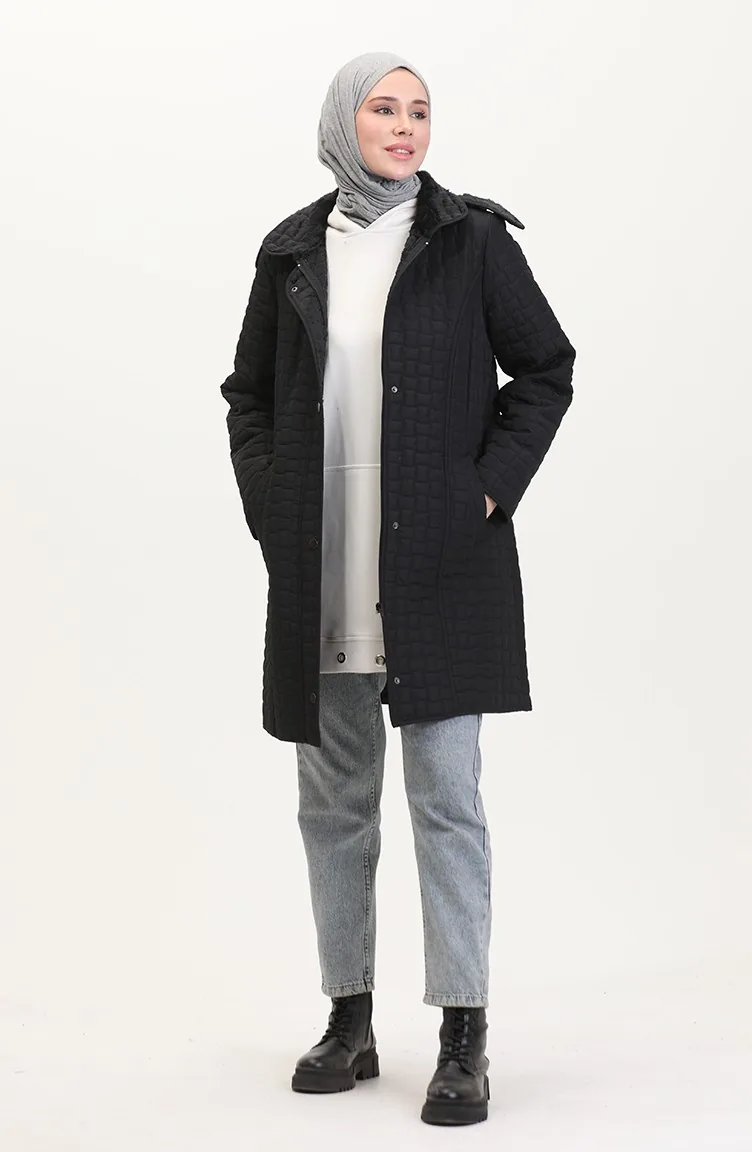 معطف كابتونيه بقبعة مقاس كبير 6132-01 أسود 6132-01