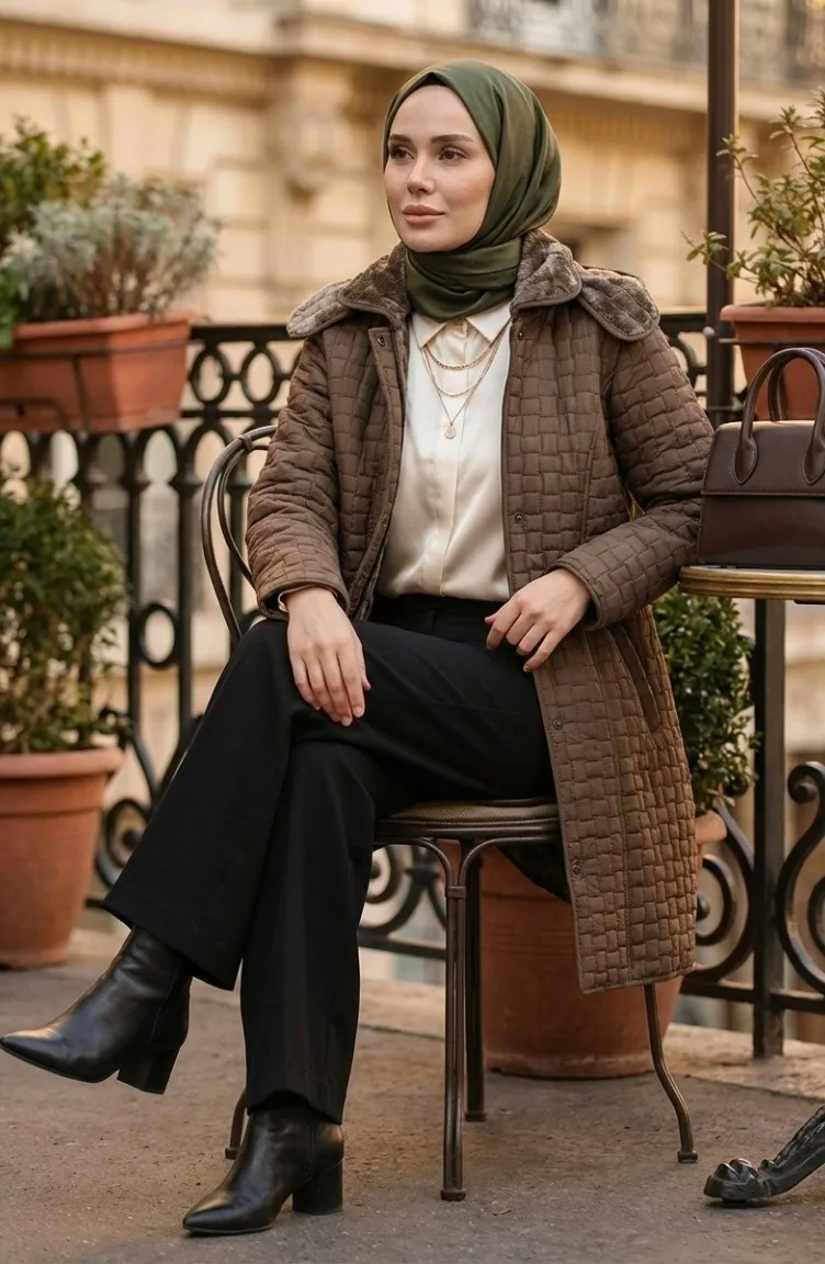 استخدم فيه اللون الشوكو. قماش البوليستر لا يحتاج كثيرا إلى الكوي. ذو مظهر سادة. استعملت الأزرار ليجعل المنتج سهولة الارتداء. مصممة من القماش السميك. هناك مقاسات كبيرة.