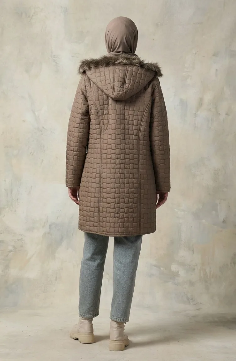 جاكيت مبطن بغطاء رأس بمقاسات كبيرة 6132-04 لون المنك 6132-04