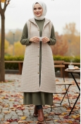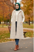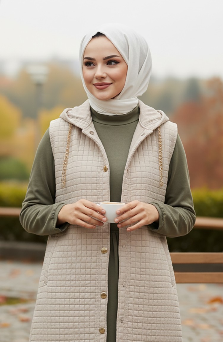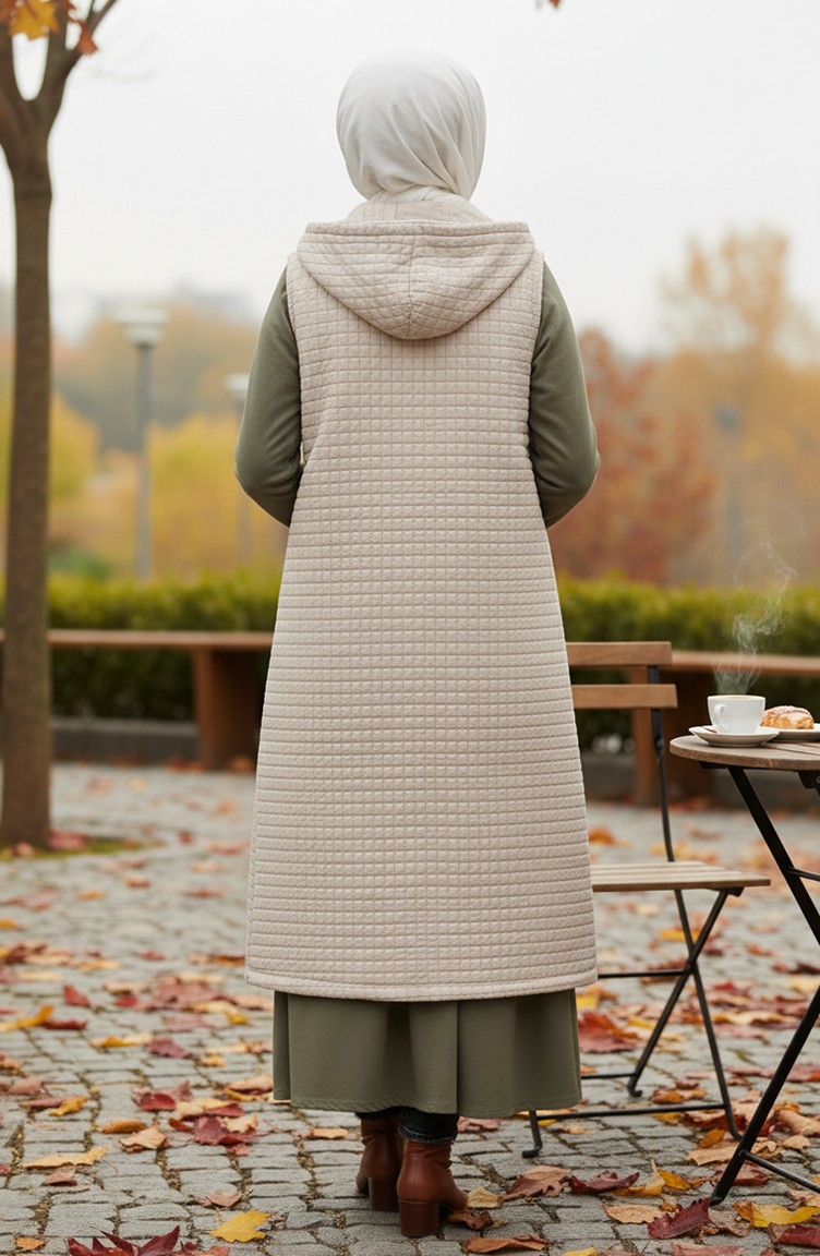 صدرية مبطنة بنمط البقلاوة، مزودة بغطاء رأس وأزرار، لون بيج، رقم الموديل 51340-01 51340-01