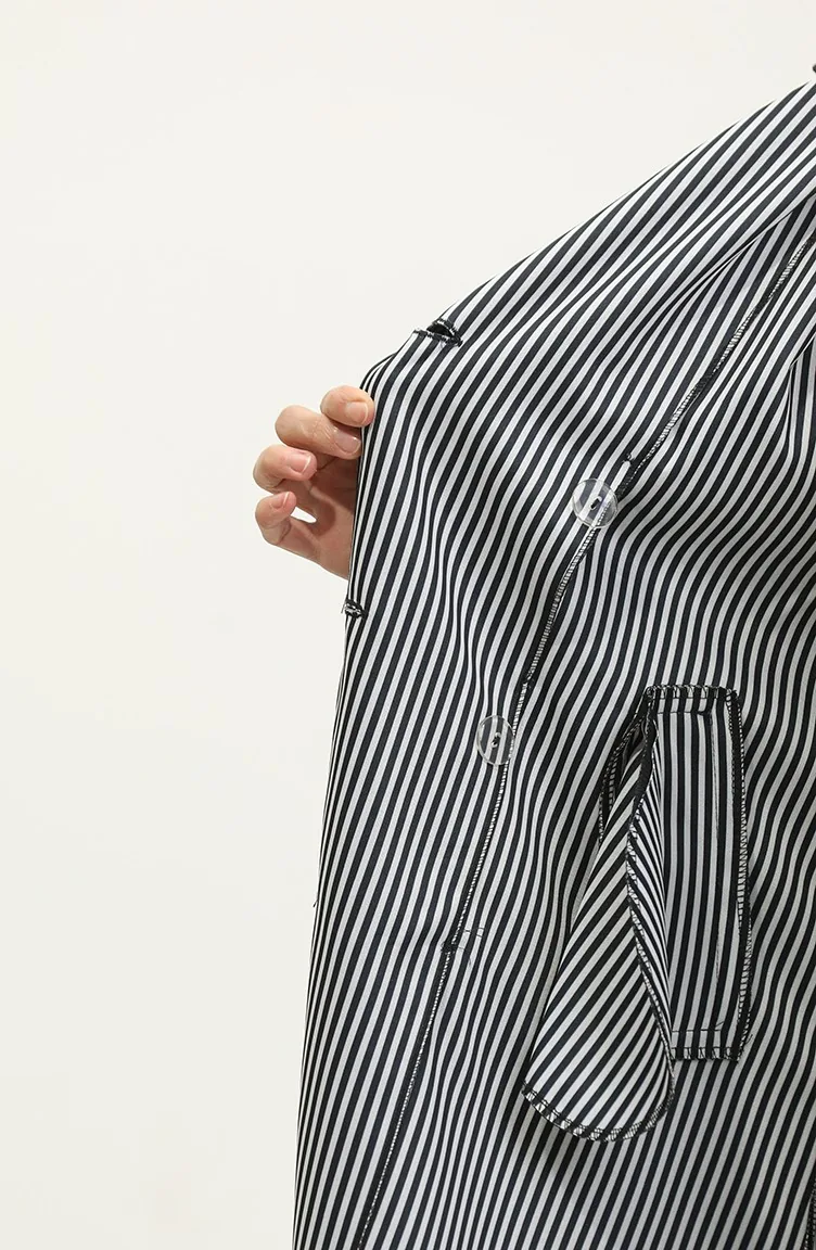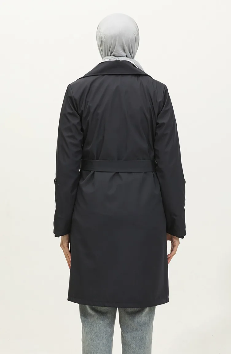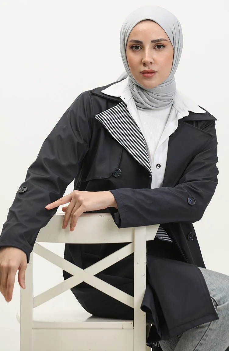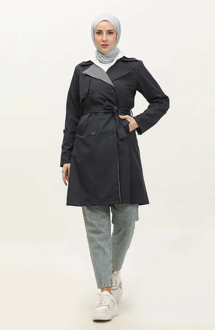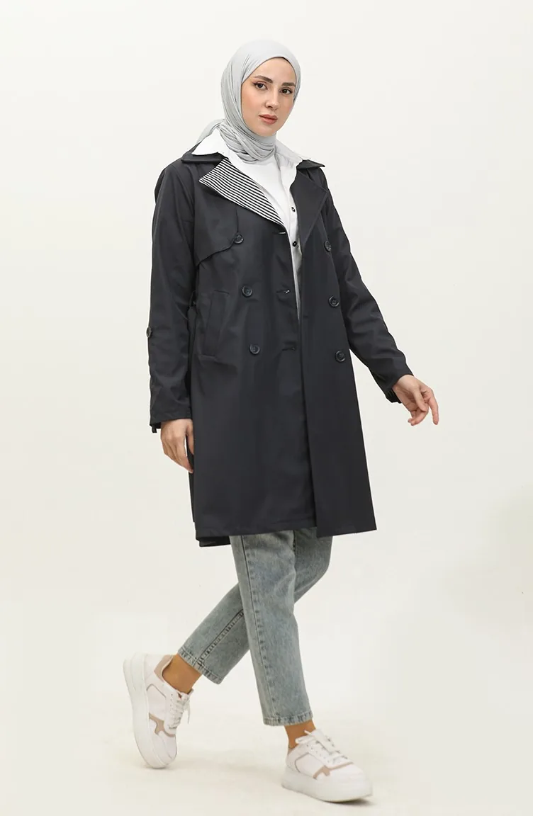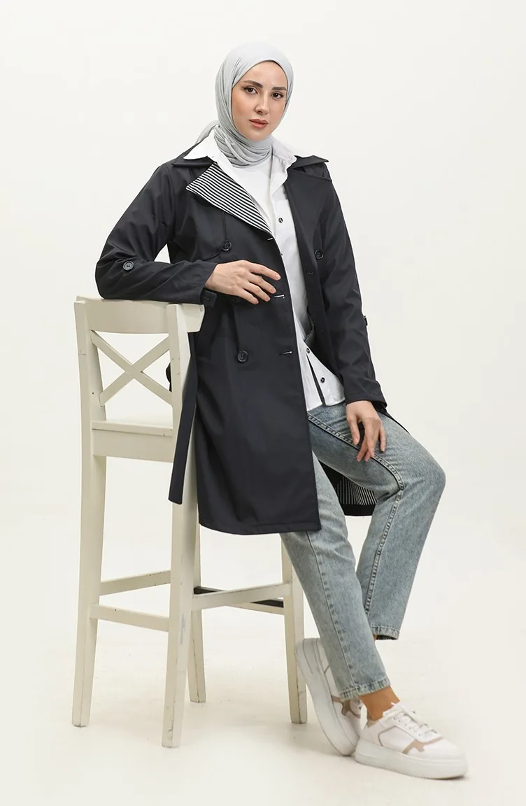 معطف واقٍ من المطر بتفاصيل مخططة باللون الأزرق الداكن K336 500