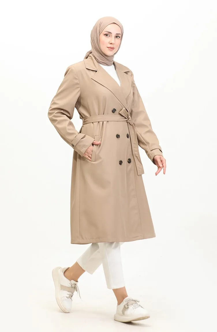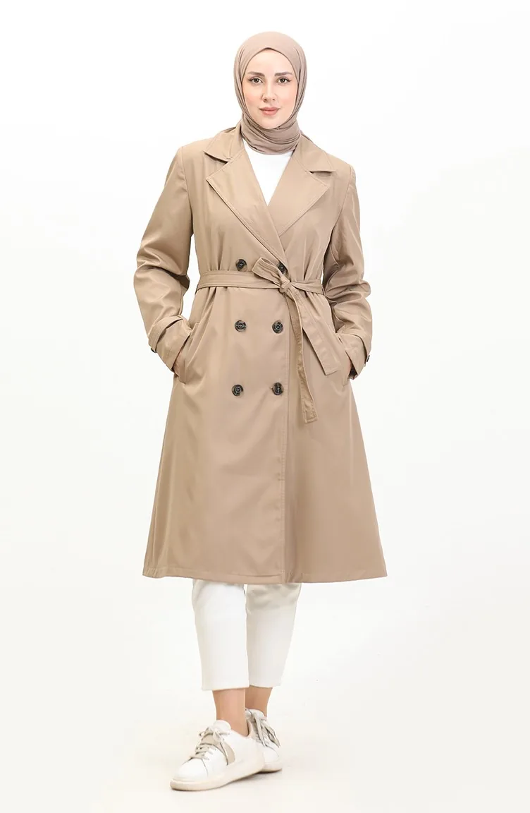 معطف طويل بحزام للنساء مقاس كبير 8549 حجري 8549.Taş