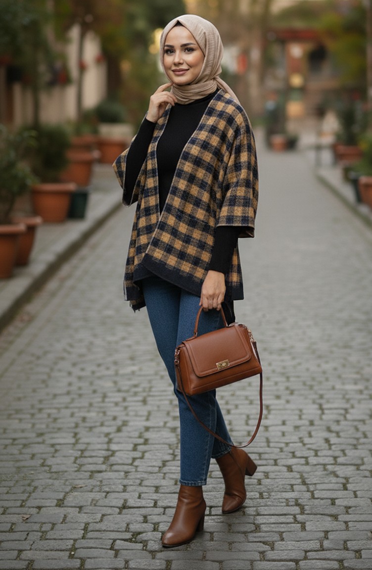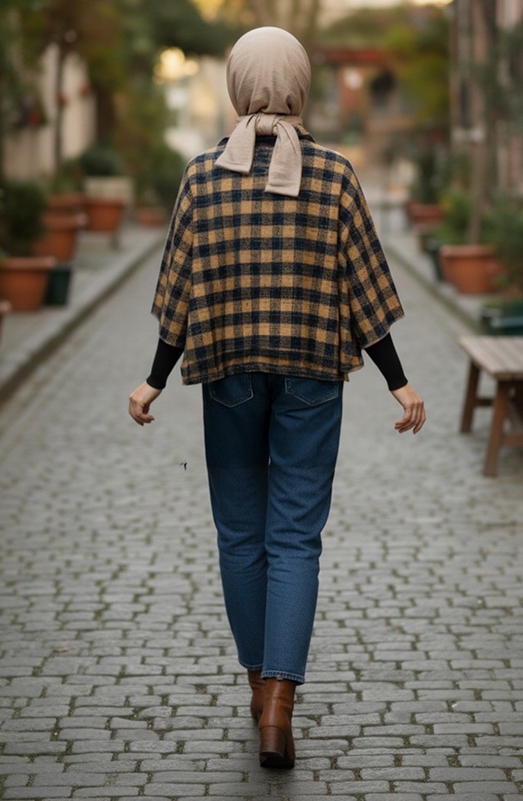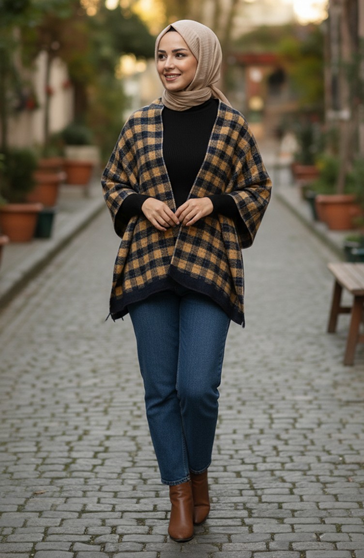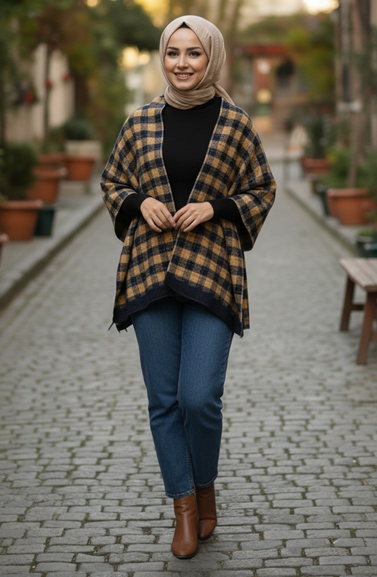 شال كتف 1093-01 خردل أزرق داكن 1093-01