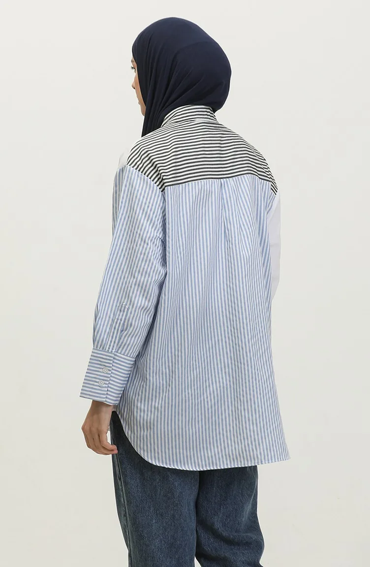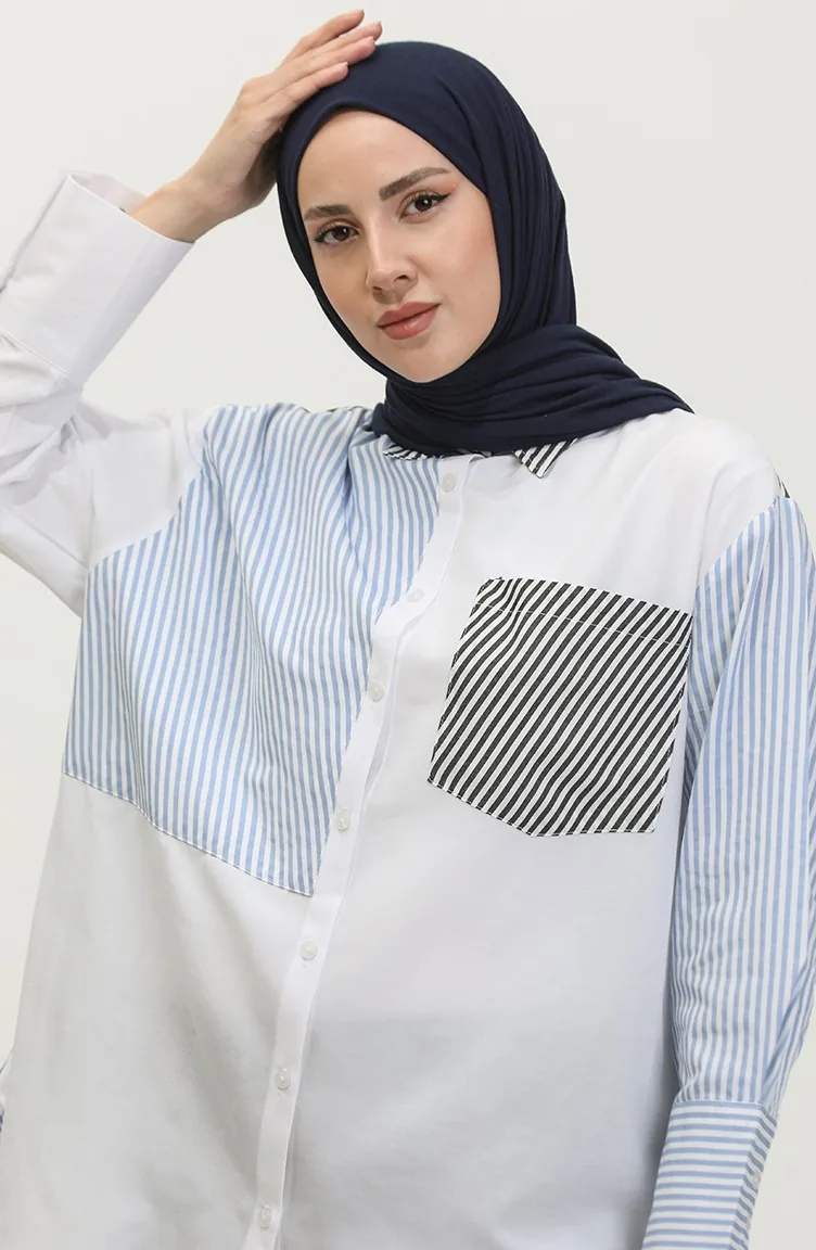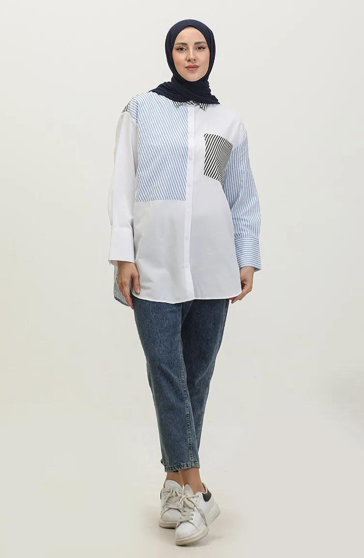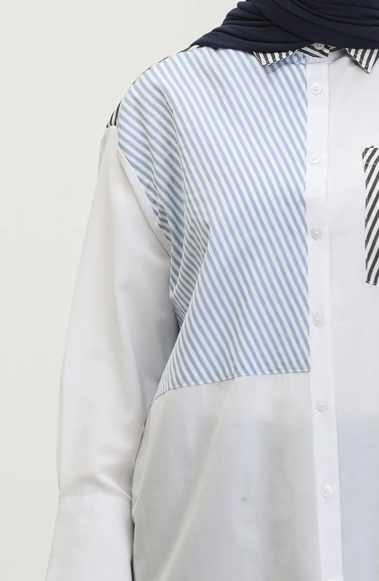 استعمل لون الأبيض. نسيج القطن لديه نسيج ماص. صمم من القماش المخطط. المنتج ذو الاستخدام بدون تبطين. المنتج طويلة الأكمام. ياقة القميص تفضل في كثير من الكومبينات. مناسب لجميع المواسم. هناك مقاسات كبيرة.