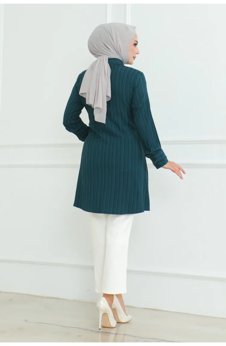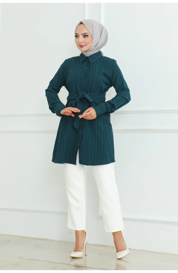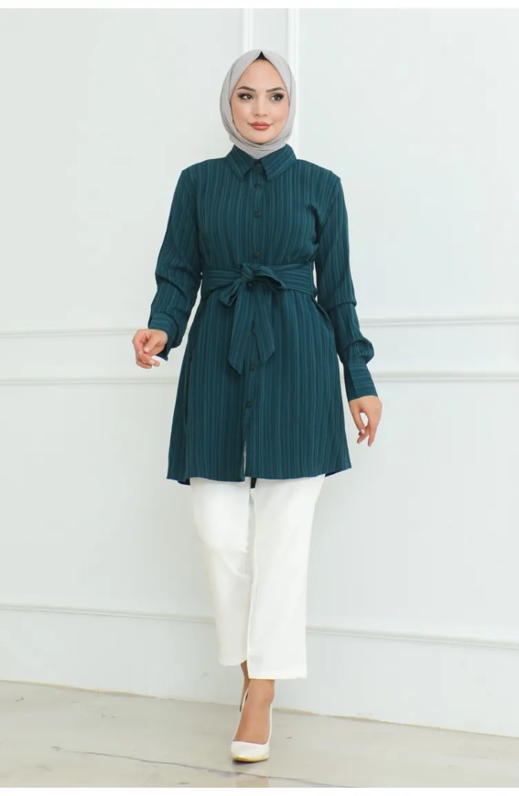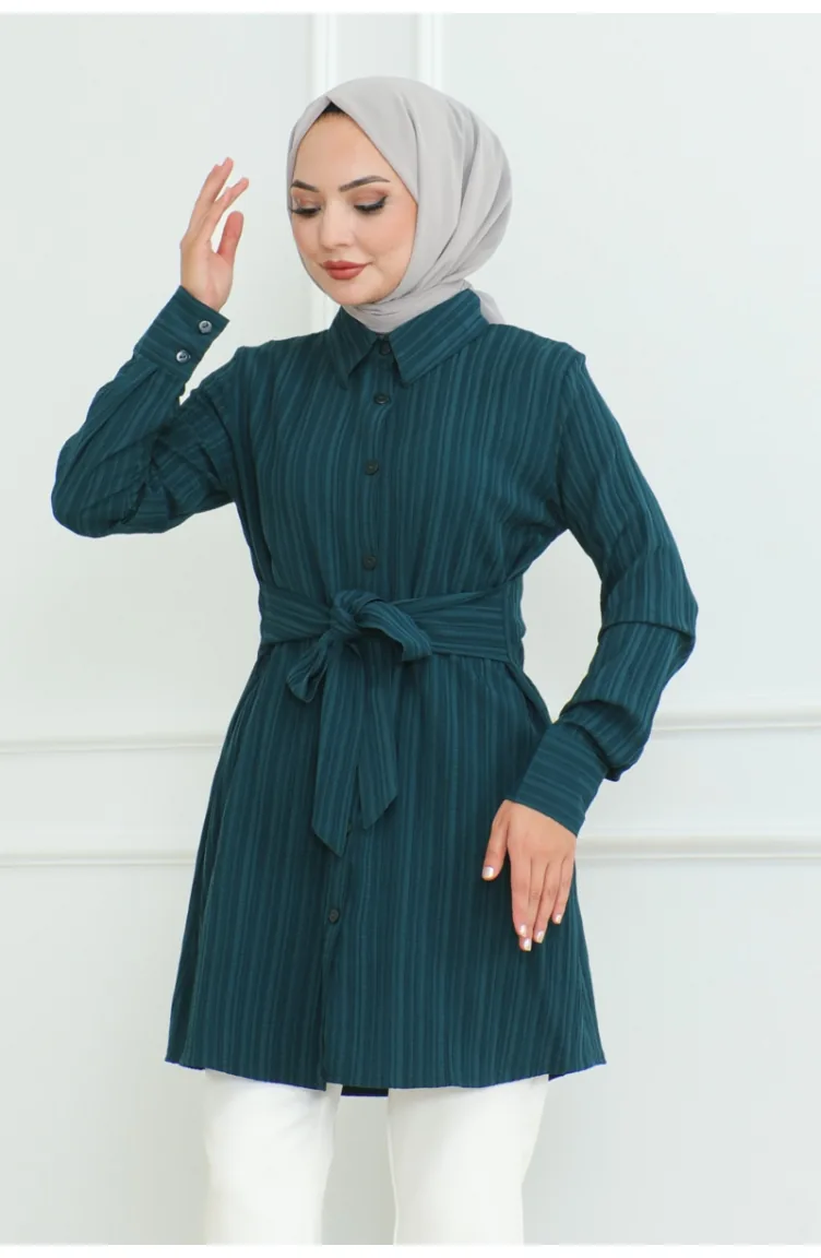 تونيك بتصميم قميص مُربط 9007-05 لون بترولي 9007-05