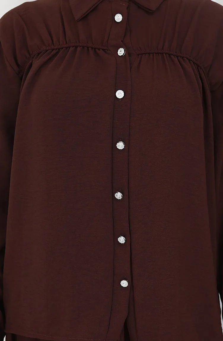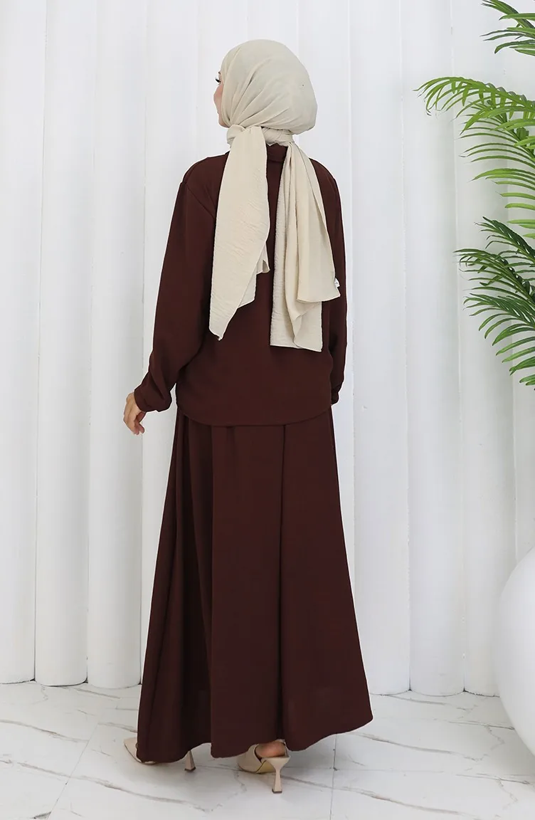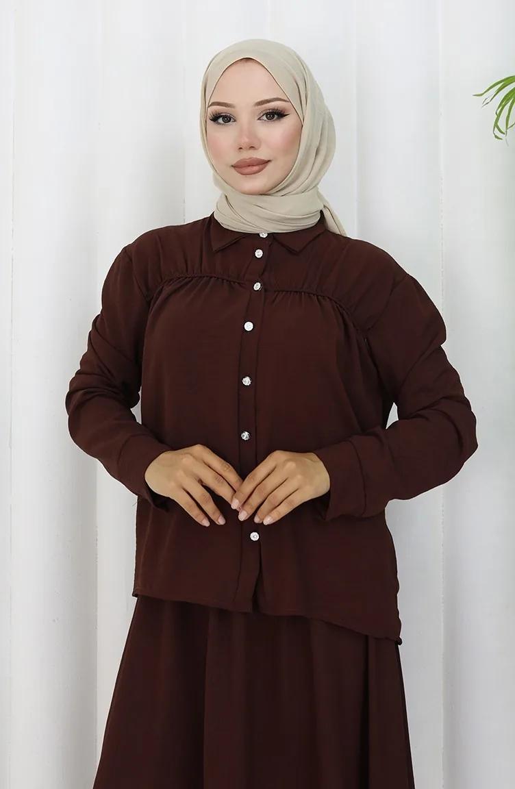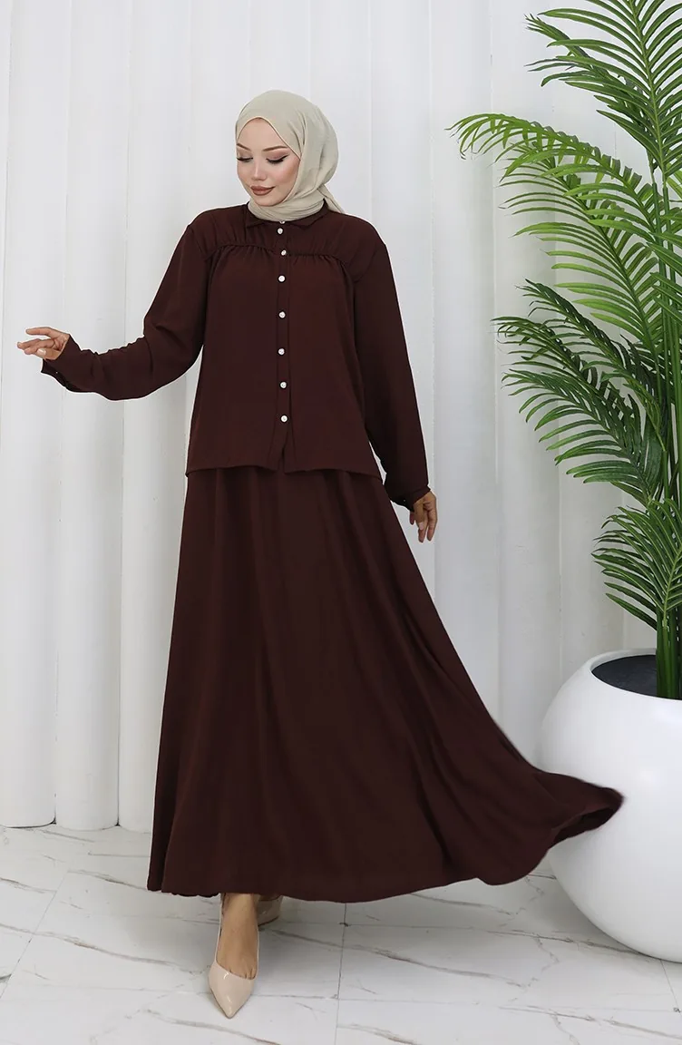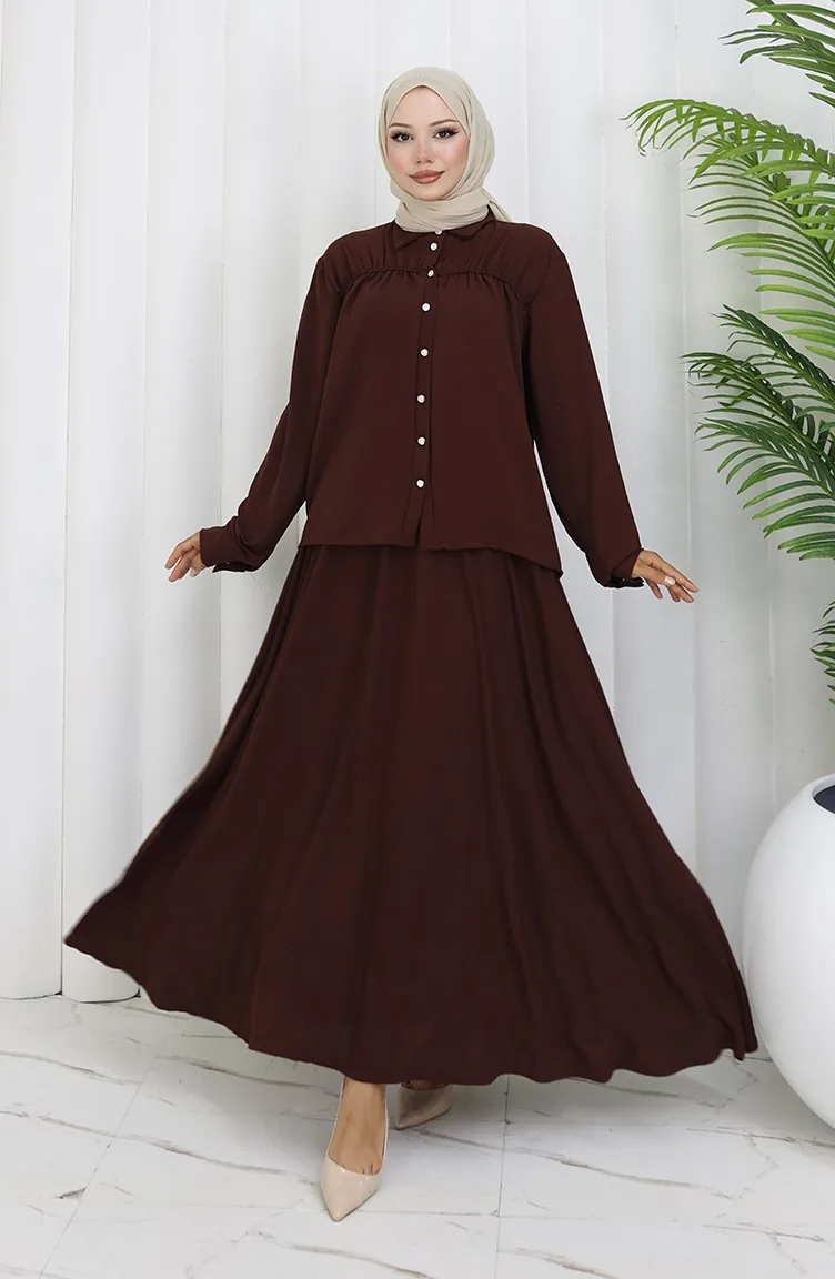 بدلة قميص وتنورة من قماش Aerobin مكونة من قطعتين 2082-01 بني 2082-01