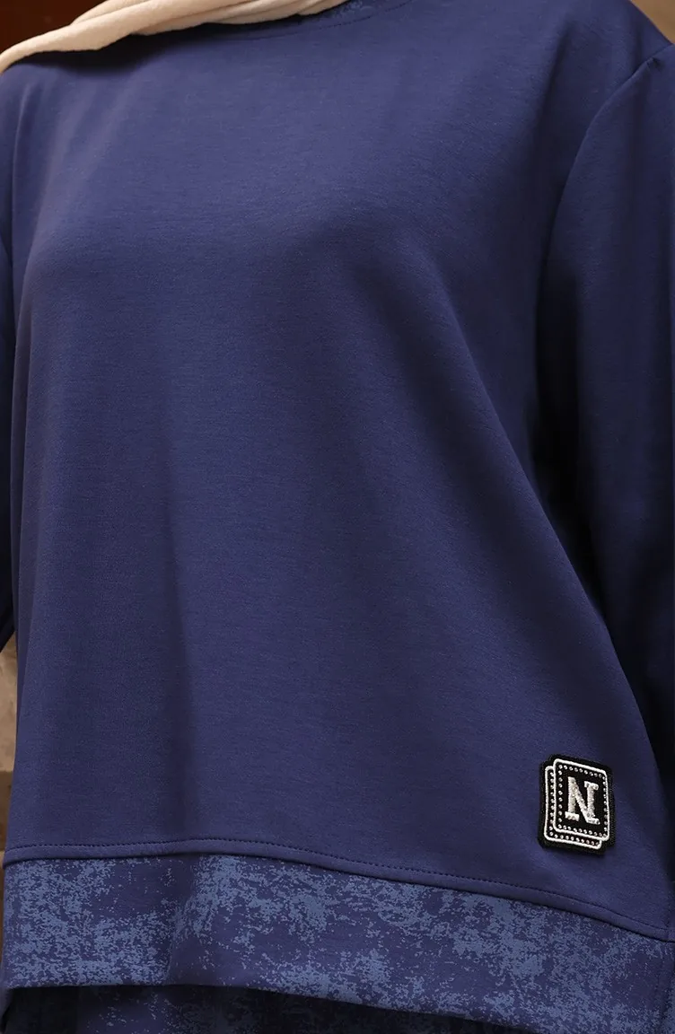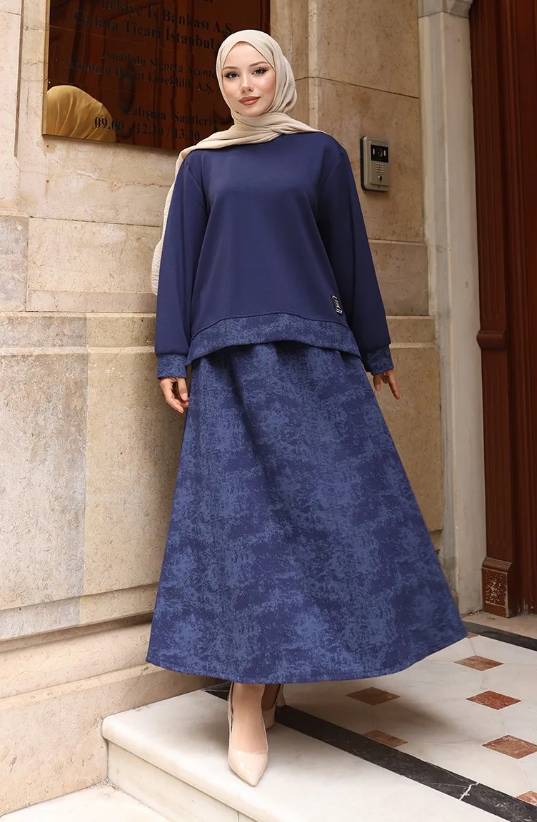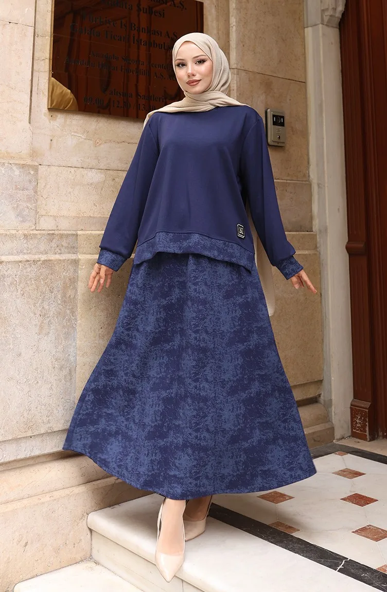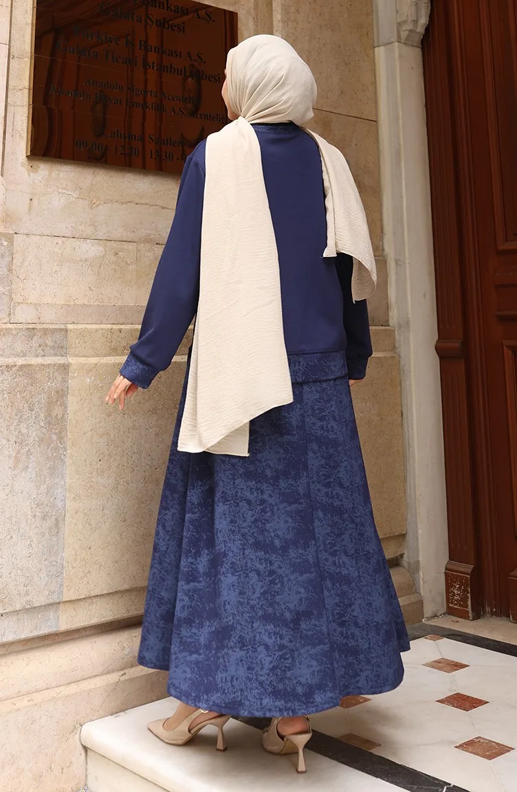 بدلة حجاب من قماش منقوش من Oysho 0218-01 أزرق داكن 0218-01