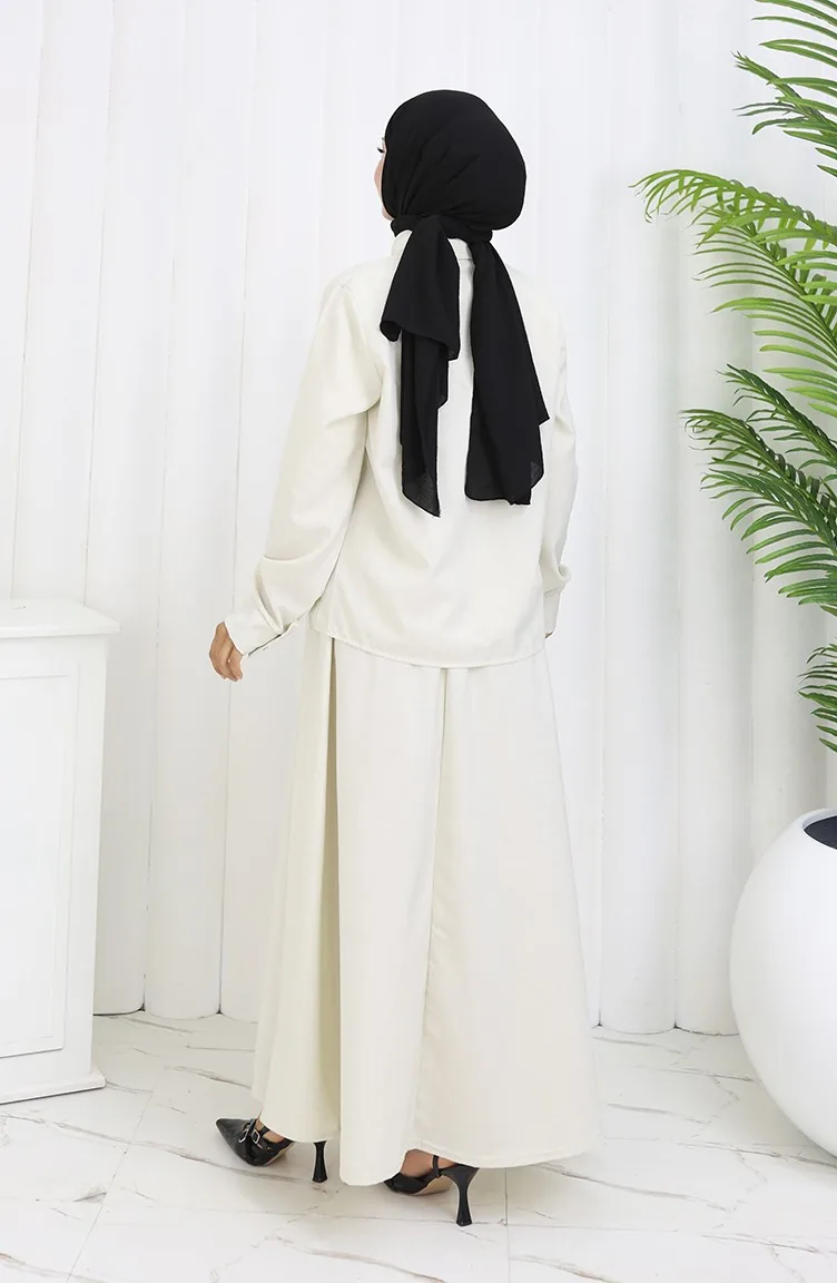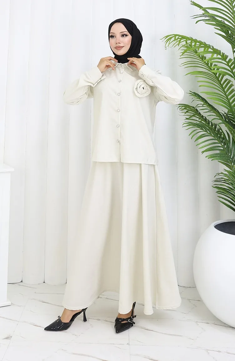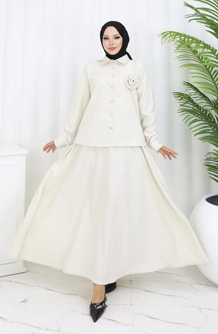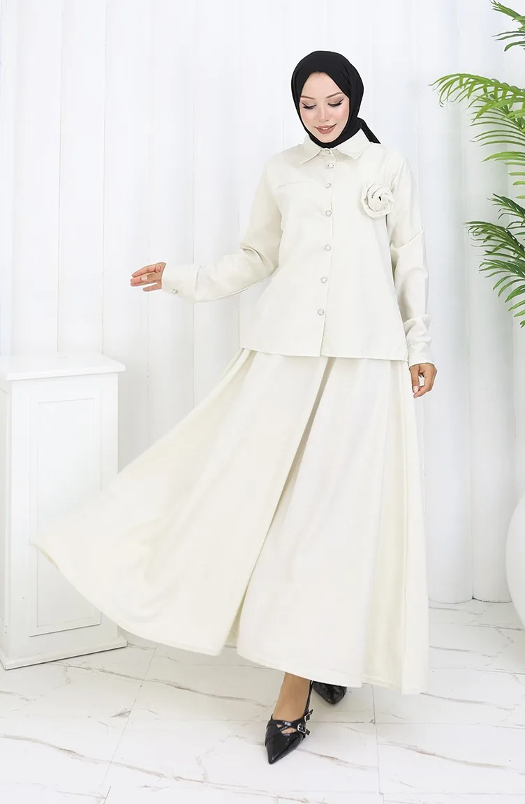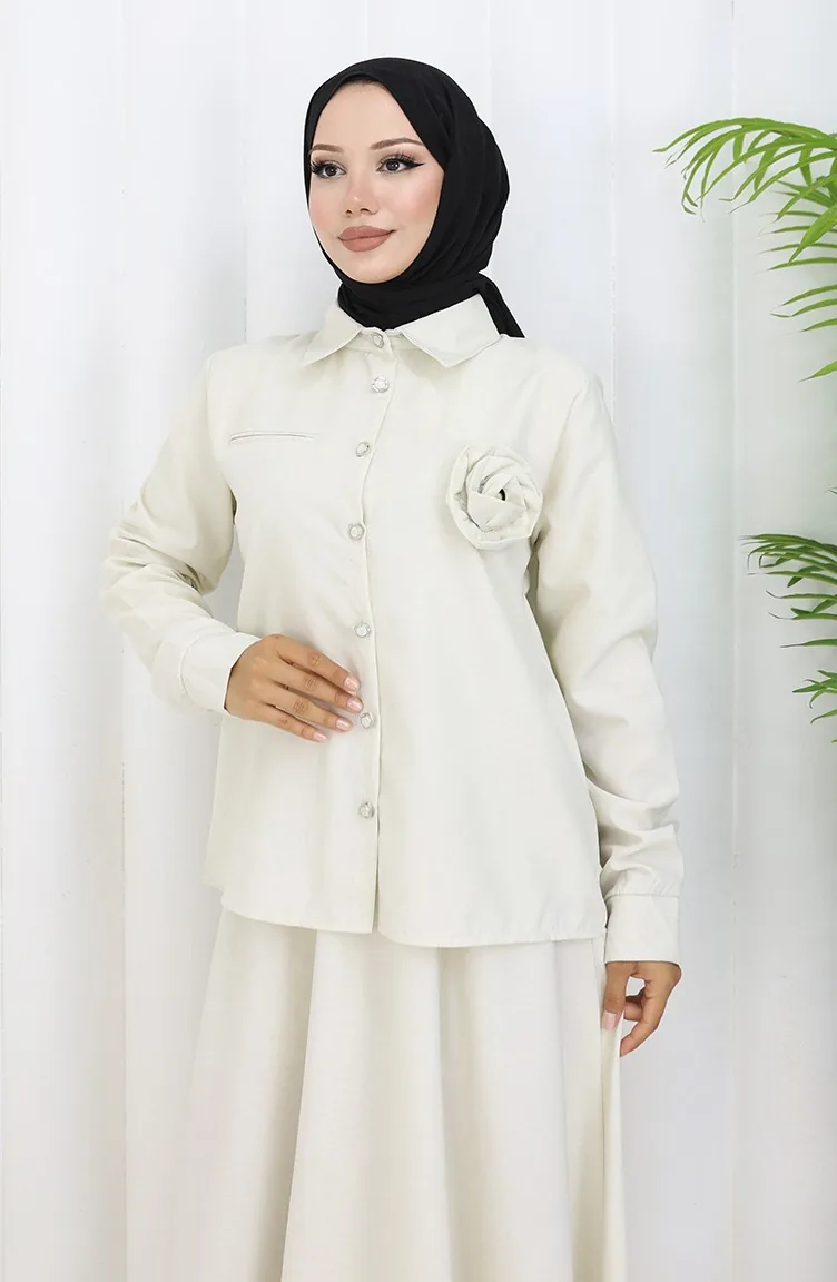 بدلة من قطعتين، قميص وتنورة بتفاصيل وردية، 2088-04 بيج 2088-04