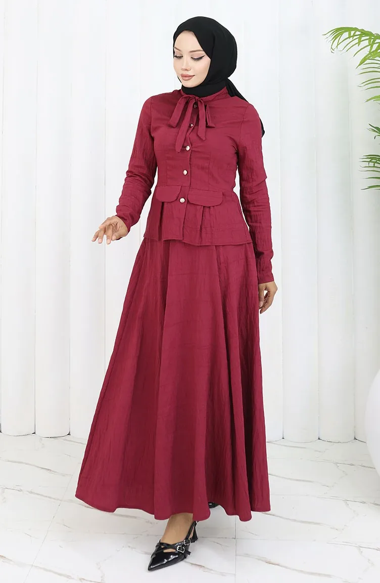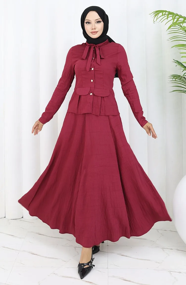 بدلة من قطعتين، قميص وتنورة، 11309-04، أحمر قاتم 11309-04