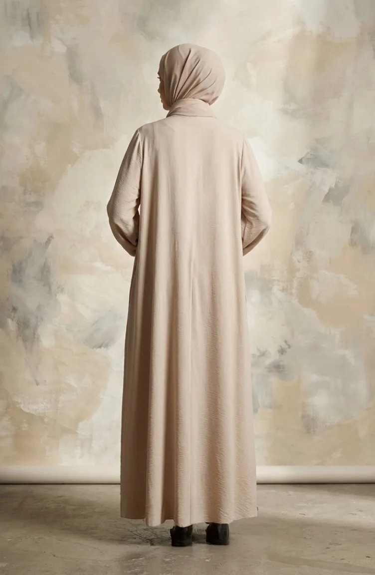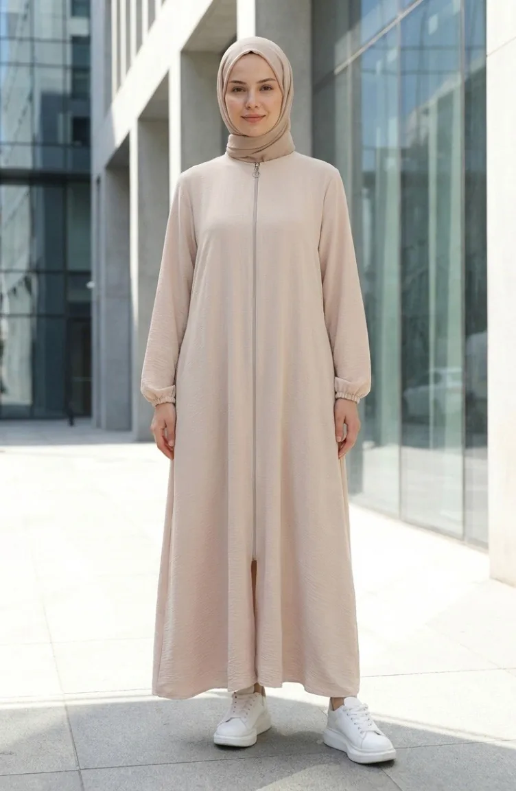 عباية مولانا من قماش أيروبين بأكمام مطاطية وسحاب، 4140-04 بيج 4140-04
