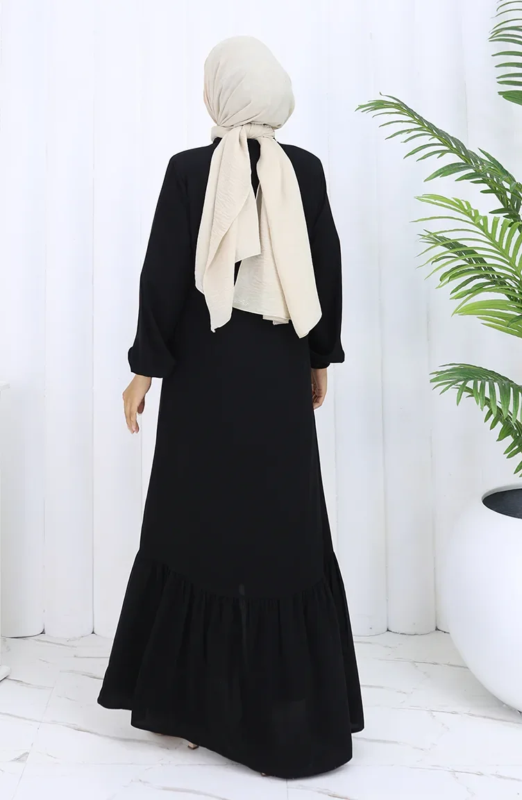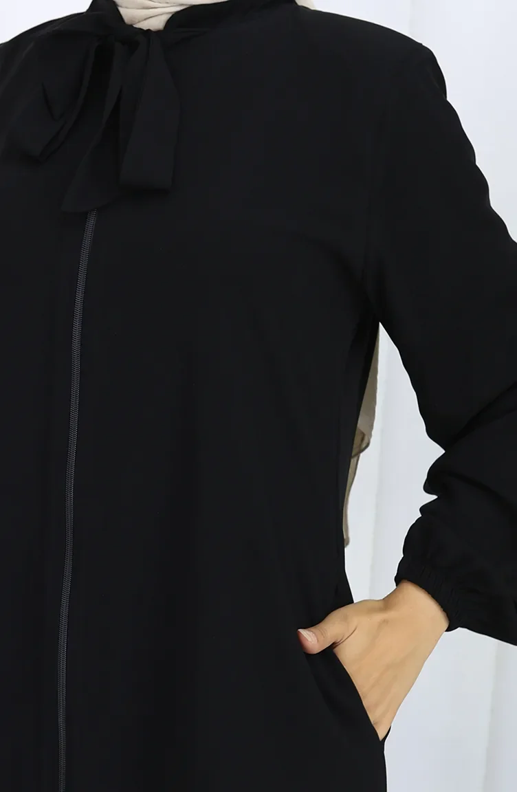 استخدم فيه اللون الأسود. استعمل حرير المدينة. ذو مظهر سادة. لسهولة استخدامها. مناسب لجميع المواسم. هناك مقاسات كبيرة.
