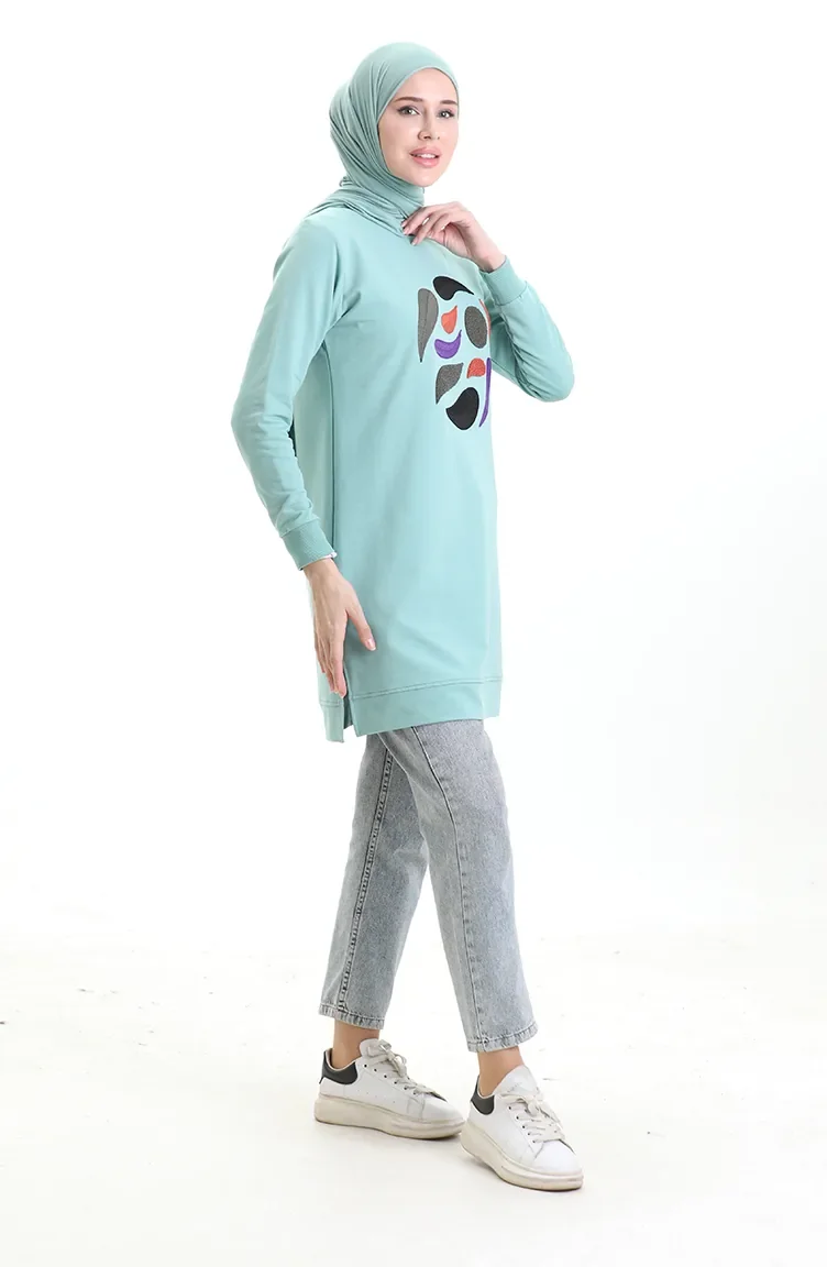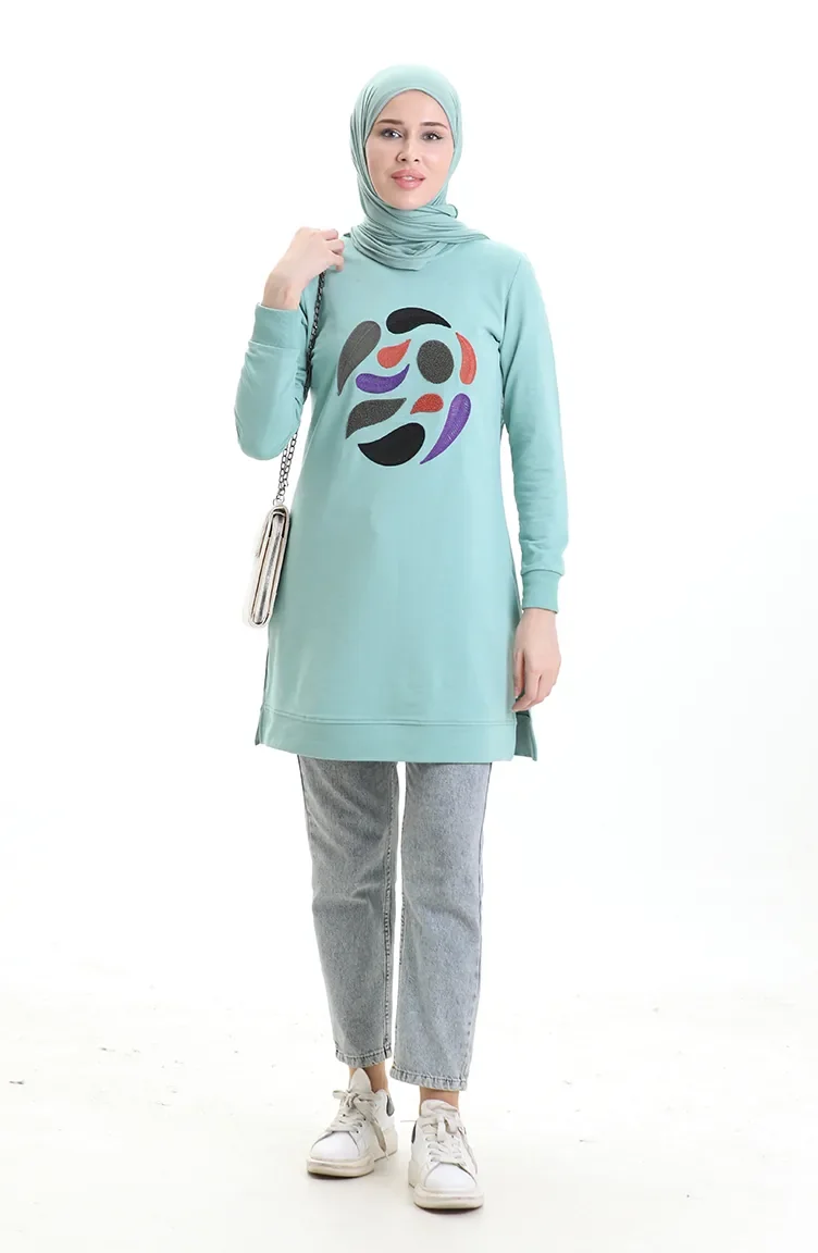 تونيك أرابوي بفتحة مضلعة 9117-03 أخضر لوزي 9117-03