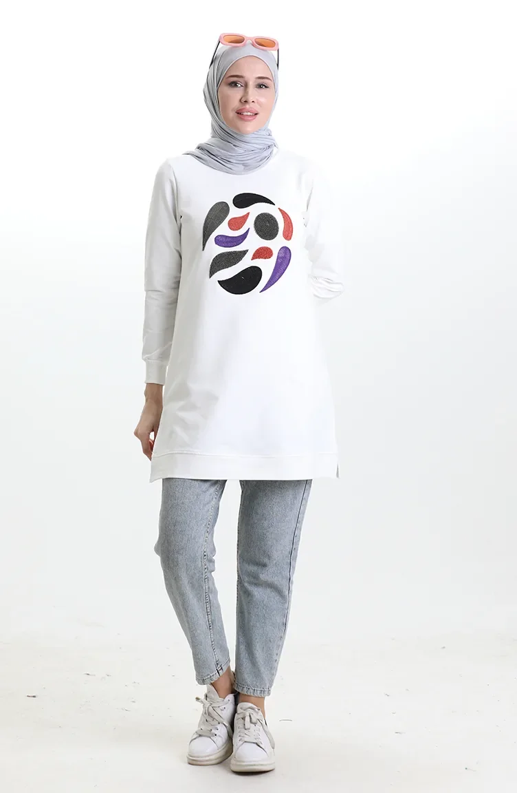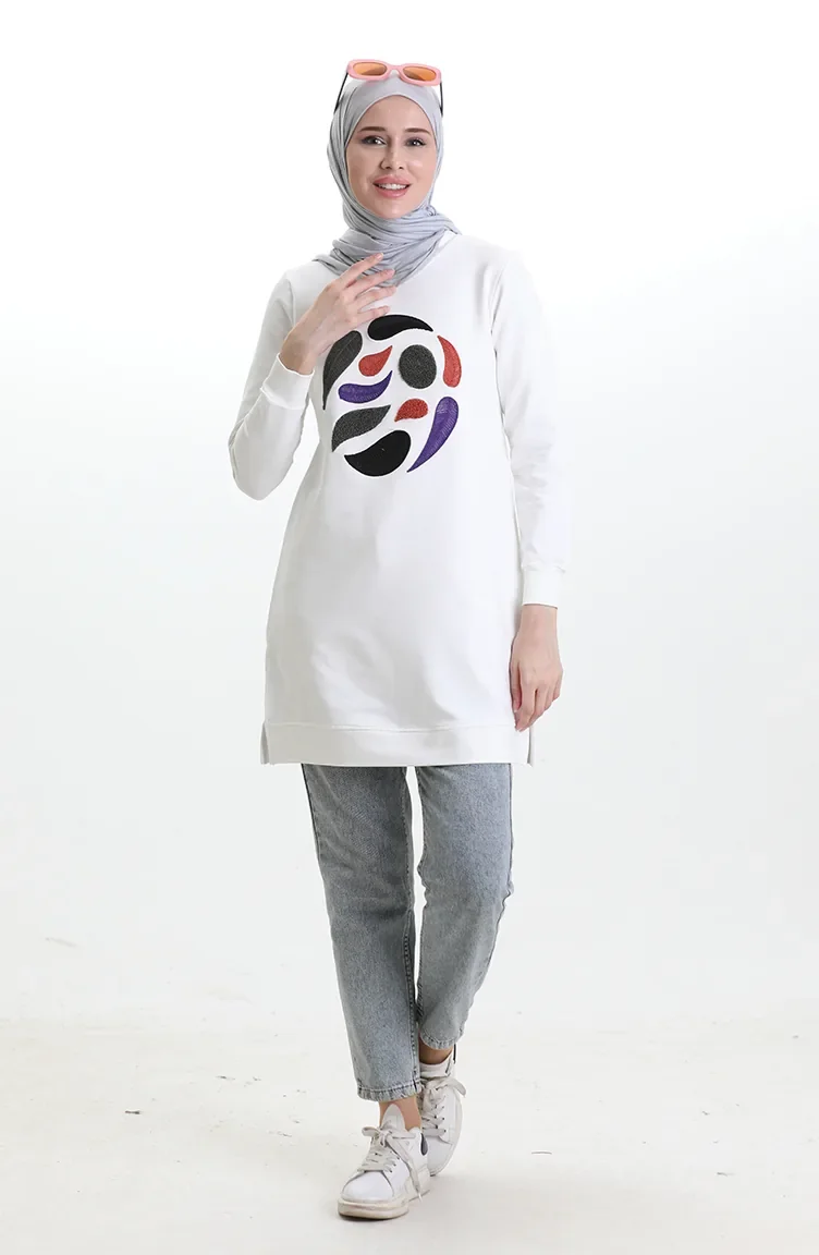 تونيك أرابوي ذو شق مضلع 9117-06 أبيض 9117-06