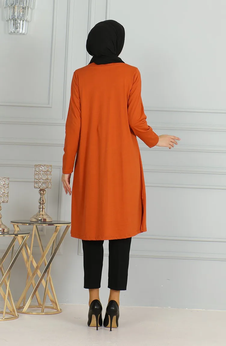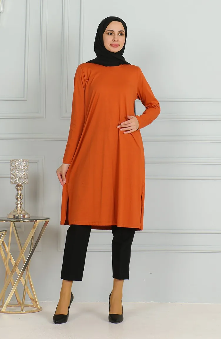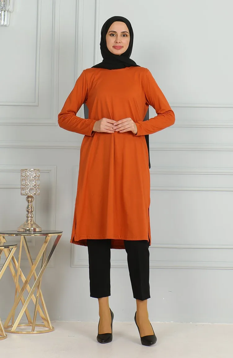 تونيك طويل بشق 9141-01 قرميدي 9141-01