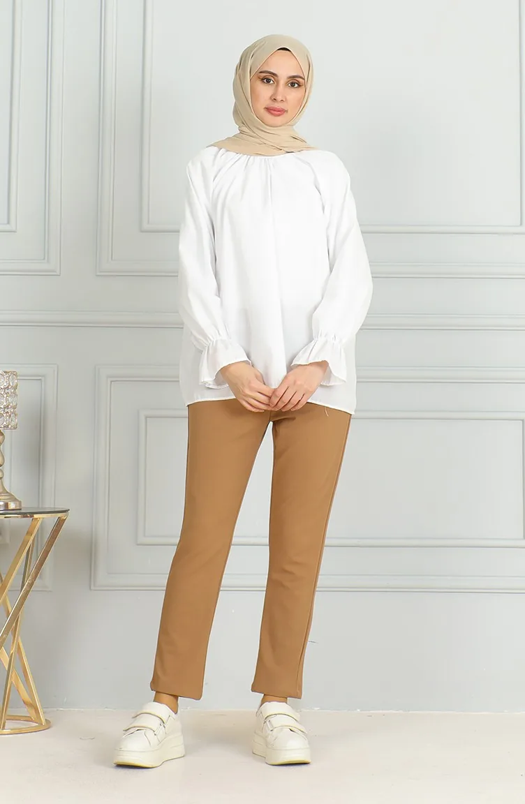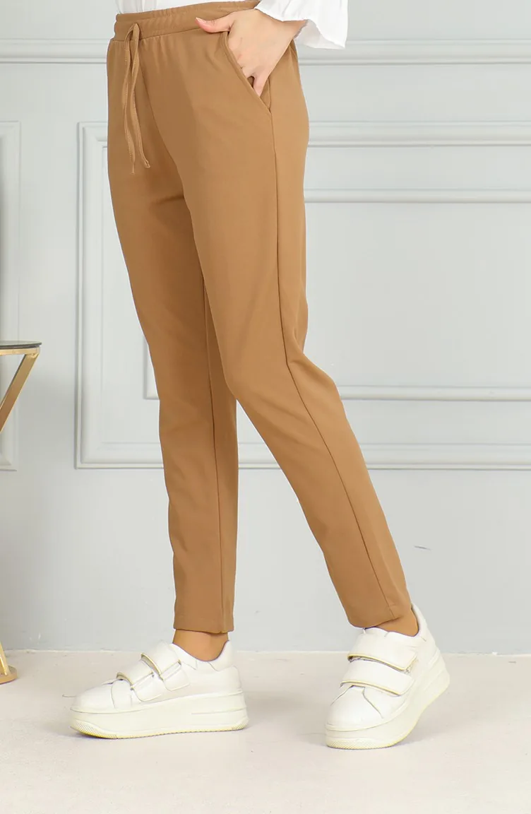 بنطلون مطاط الخصر 0498-01 بني فاتح 0498-01