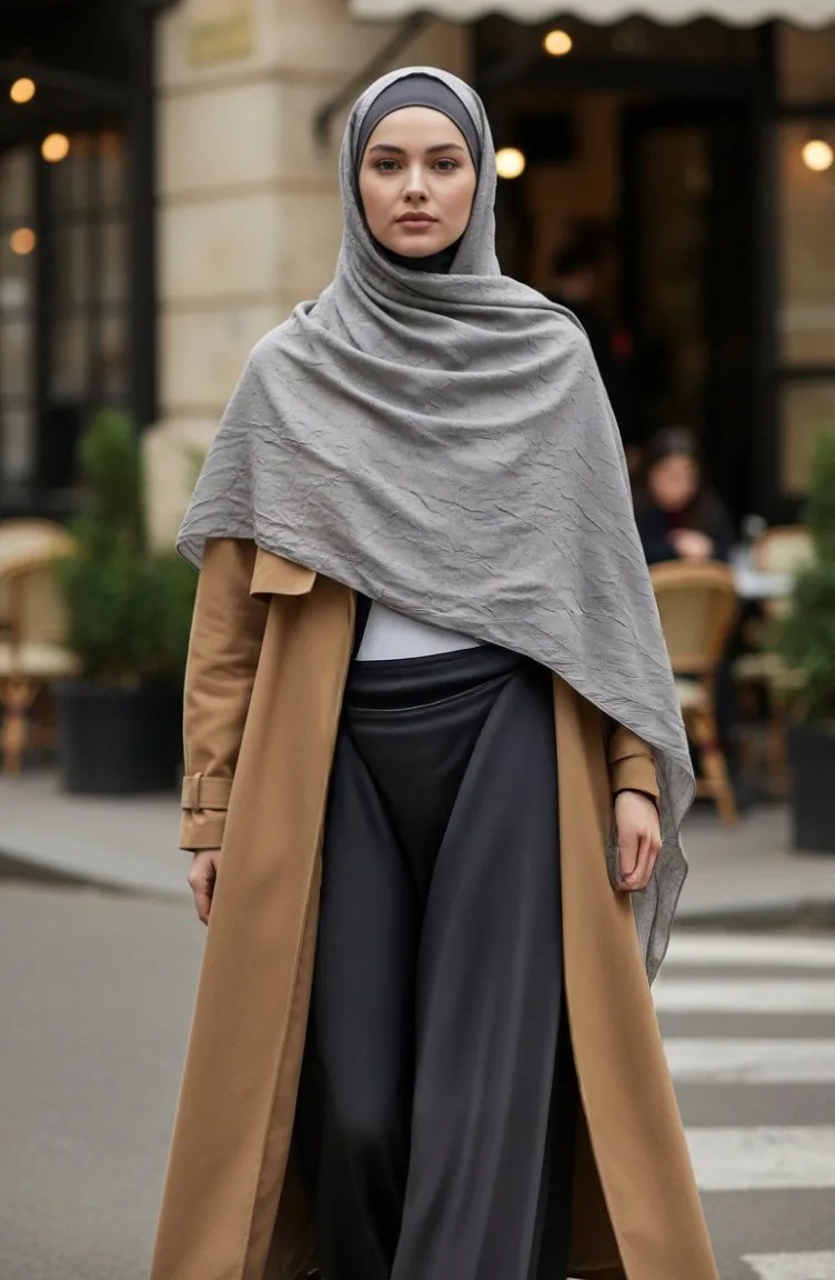 استعمل لون الرمادي. صممه نسيج الخيزران. ذو مظهر سادة. مناسب لجميع المواسم. حسب طول القياسات العادية.