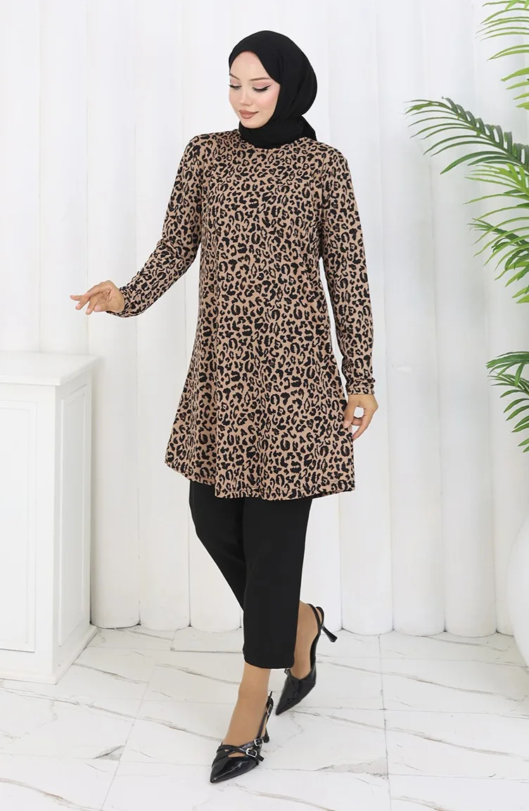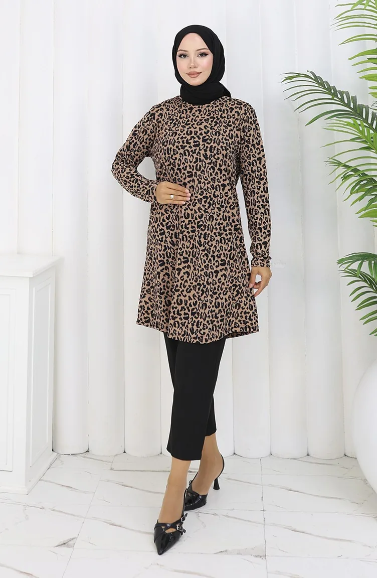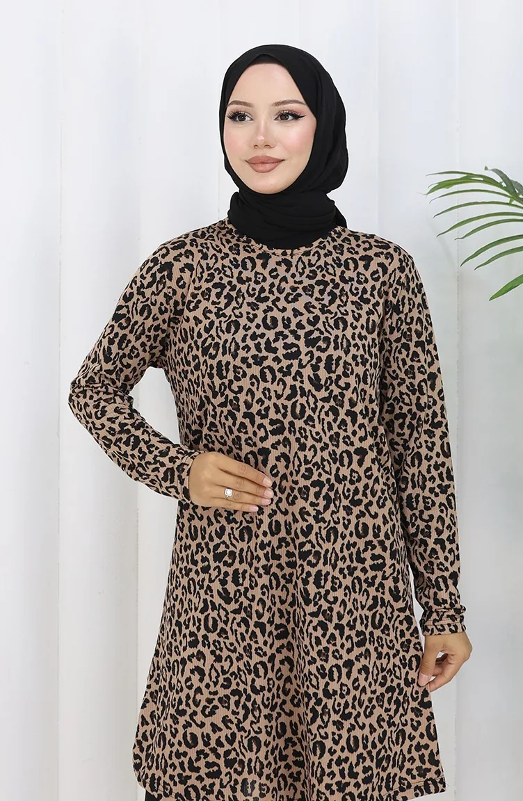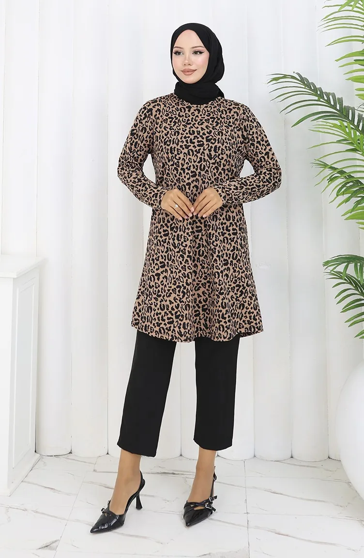 تونيك منقوش 1001A-02 لون القهوة بالحليب 1001A-02