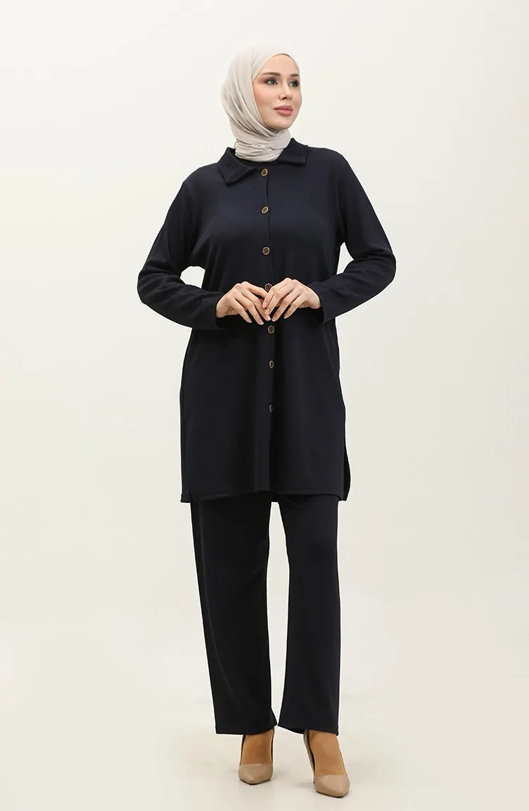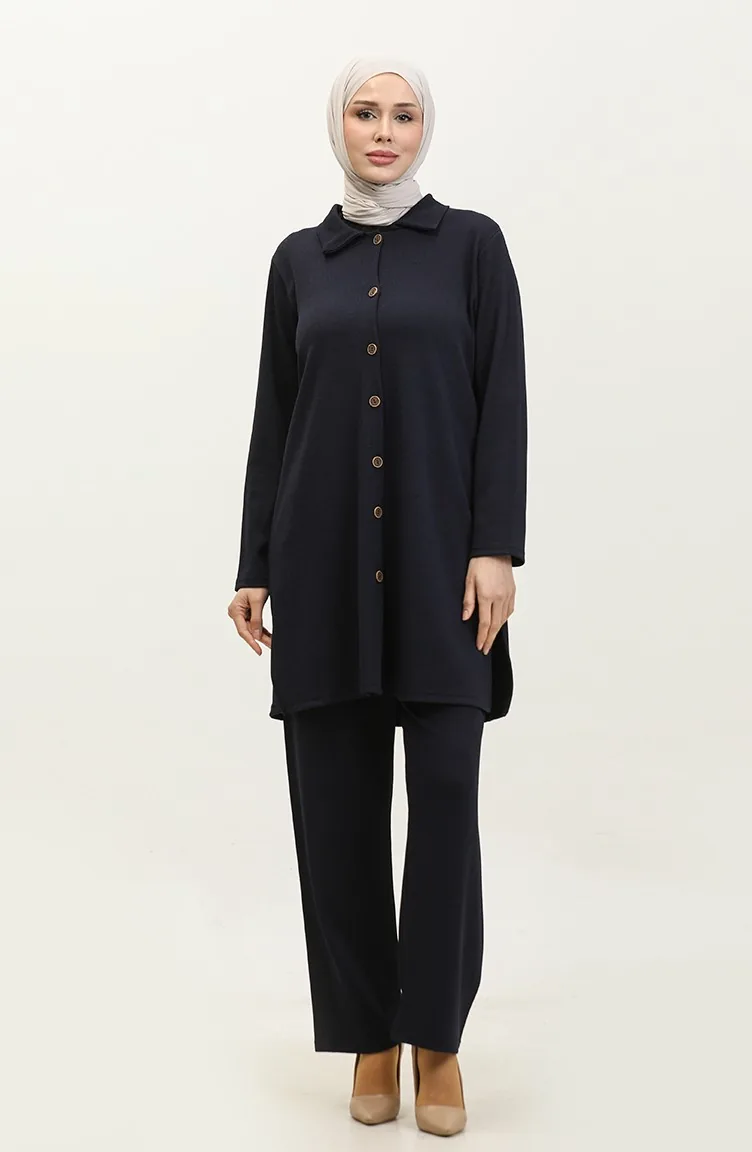بدلة تونيك وبنطلون من قطعتين من آسيا 2611-02 أزرق داكن 2611-02