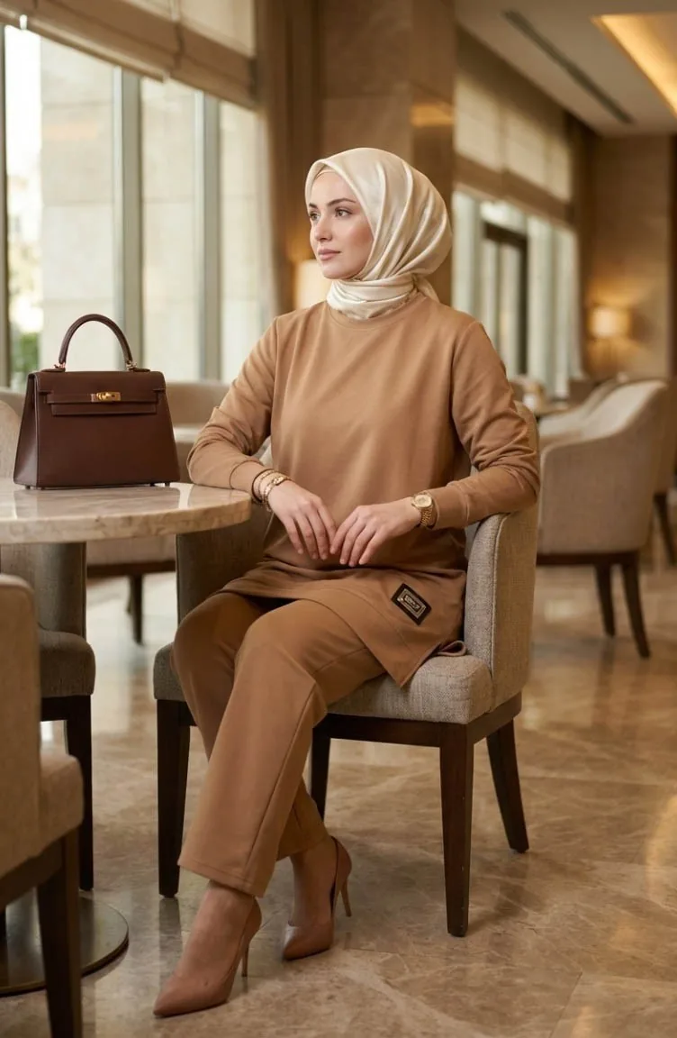 الوصف التفصيلي: ارتقي بإطلالتك اليومية مع هذا الطقم المكون من قطعتين والمتميز بتفاصيل "الأرما" (الشعار) التي تضفي لمسة عصرية. يتألف الطقم من تونيك بقصة مريحة وبنطلون بخصر مطاطي لراحة قصوى طوال اليوم. القماش عالي الجودة يضمن عدم ترهل الخامة ويحافظ على مظهرها الأنيق. مثالي للمرأة التي تبحث عن الأناقة العملية.