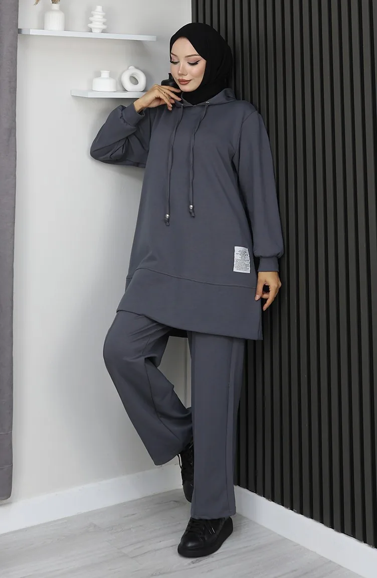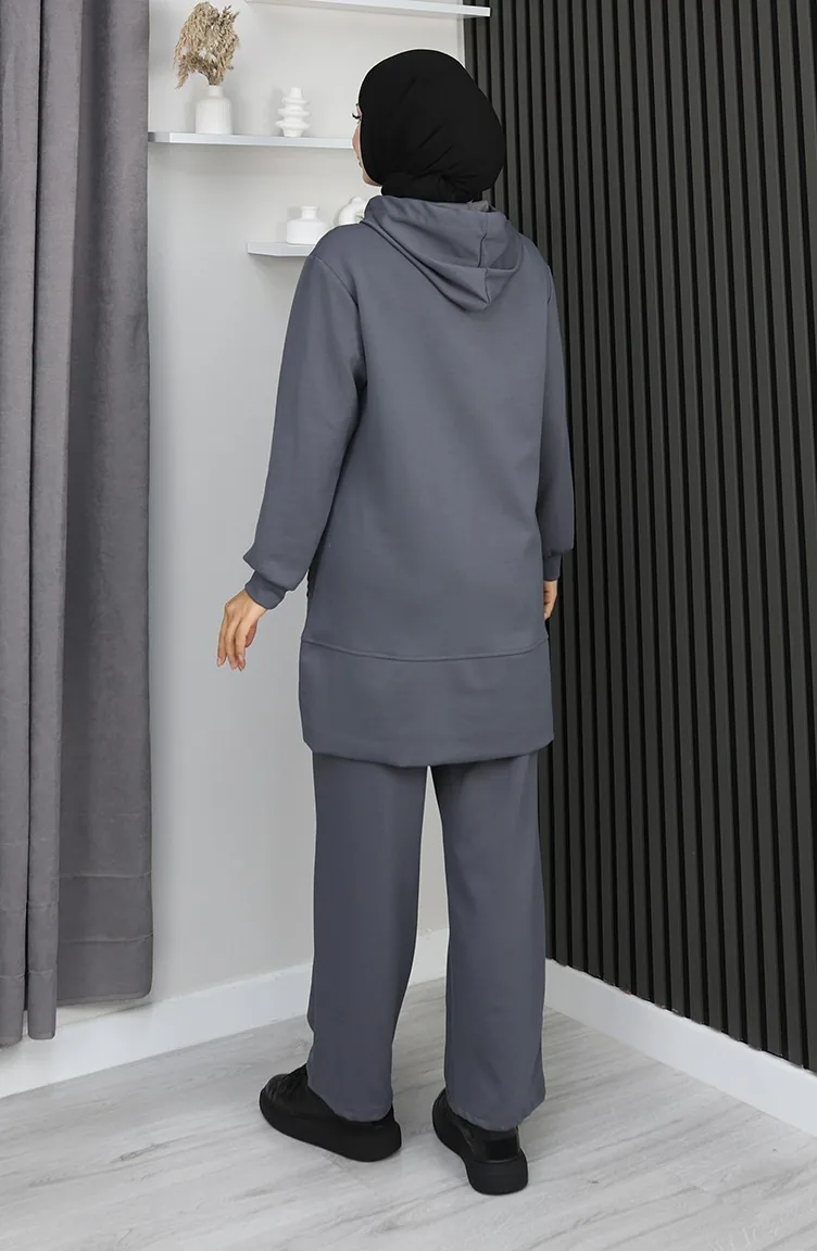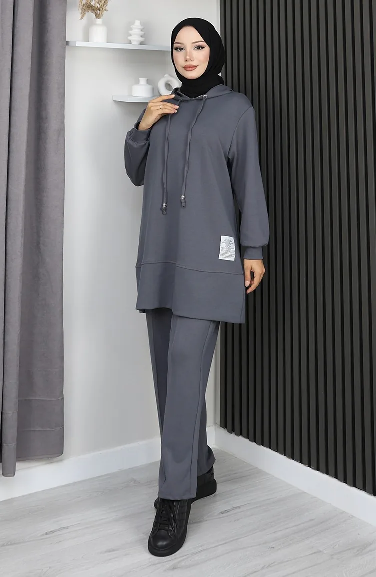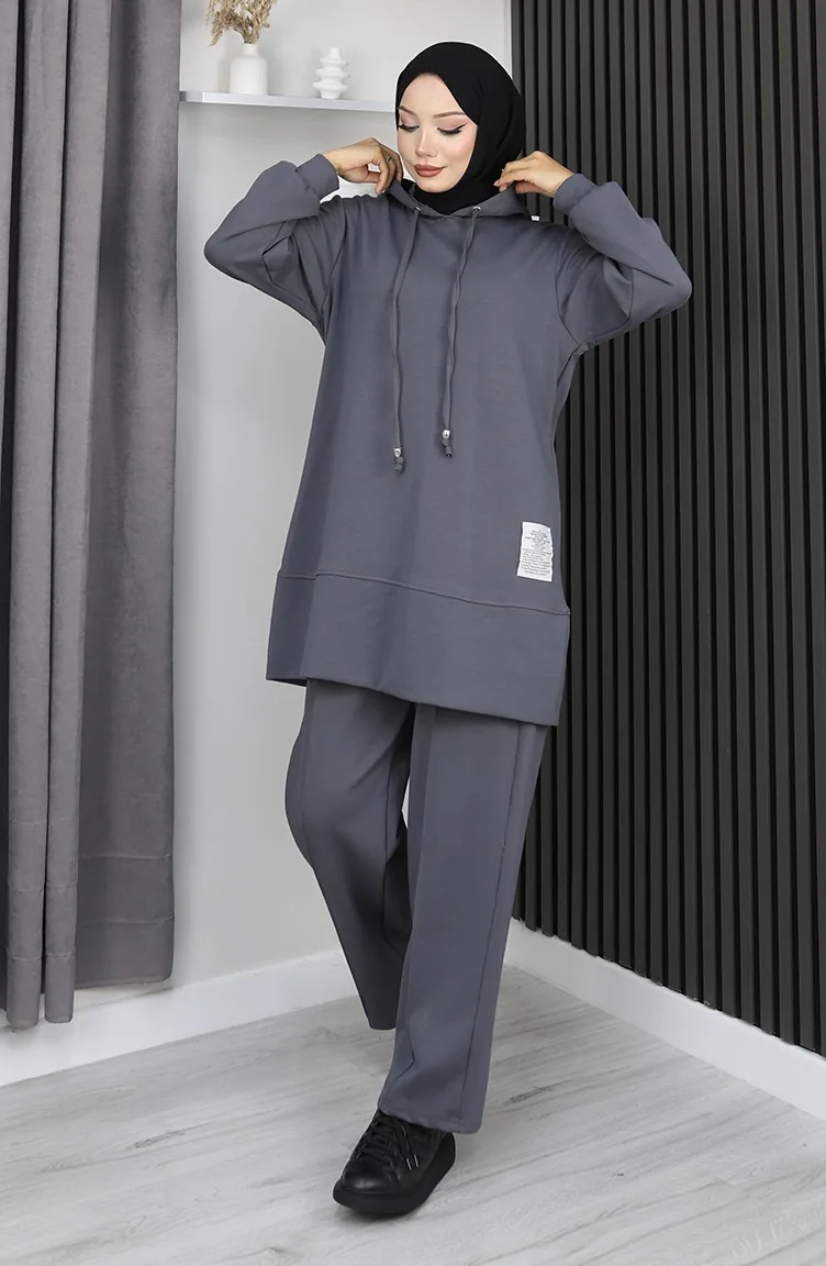 بدلة حجاب من قطعتين مطرزة من قماش أويشو 0211-04 أنثراسايت 0211-04