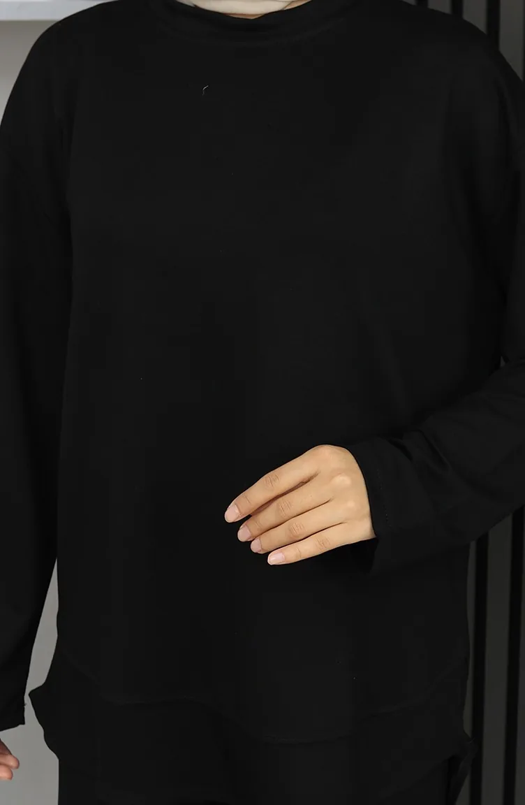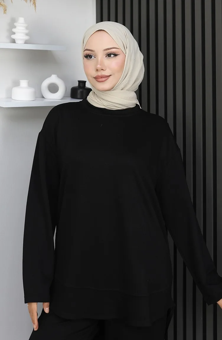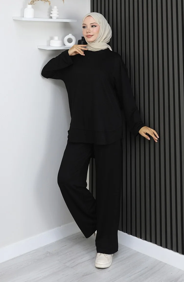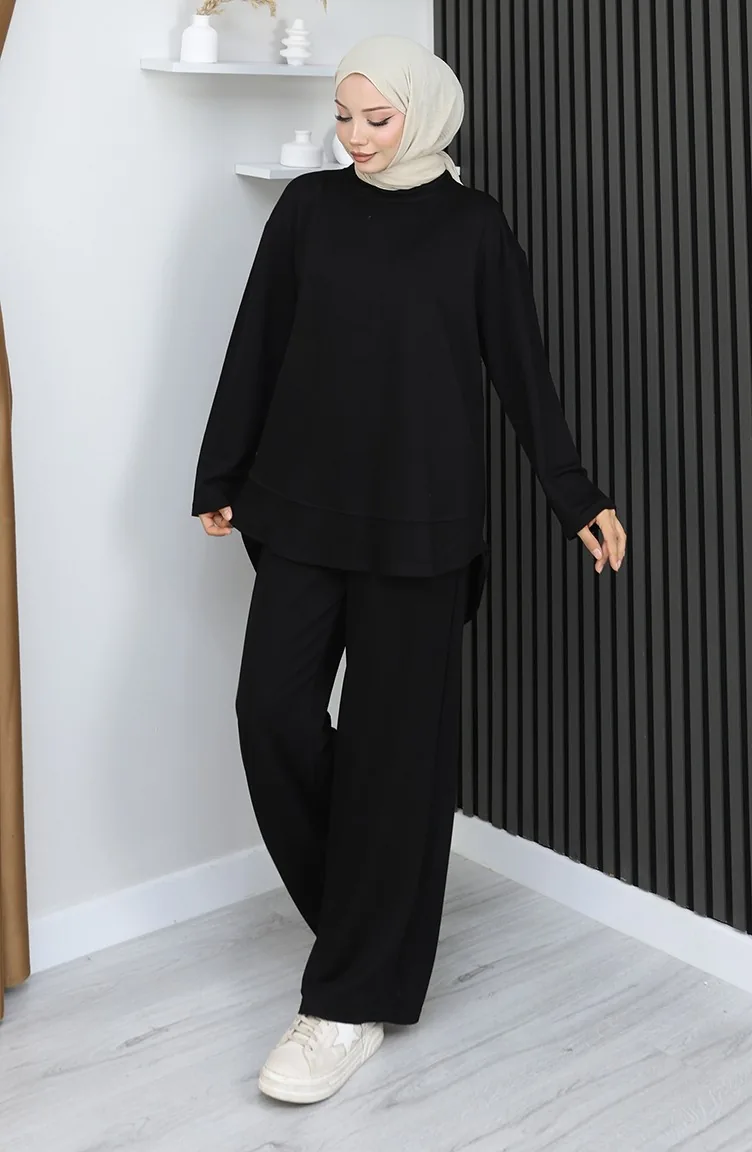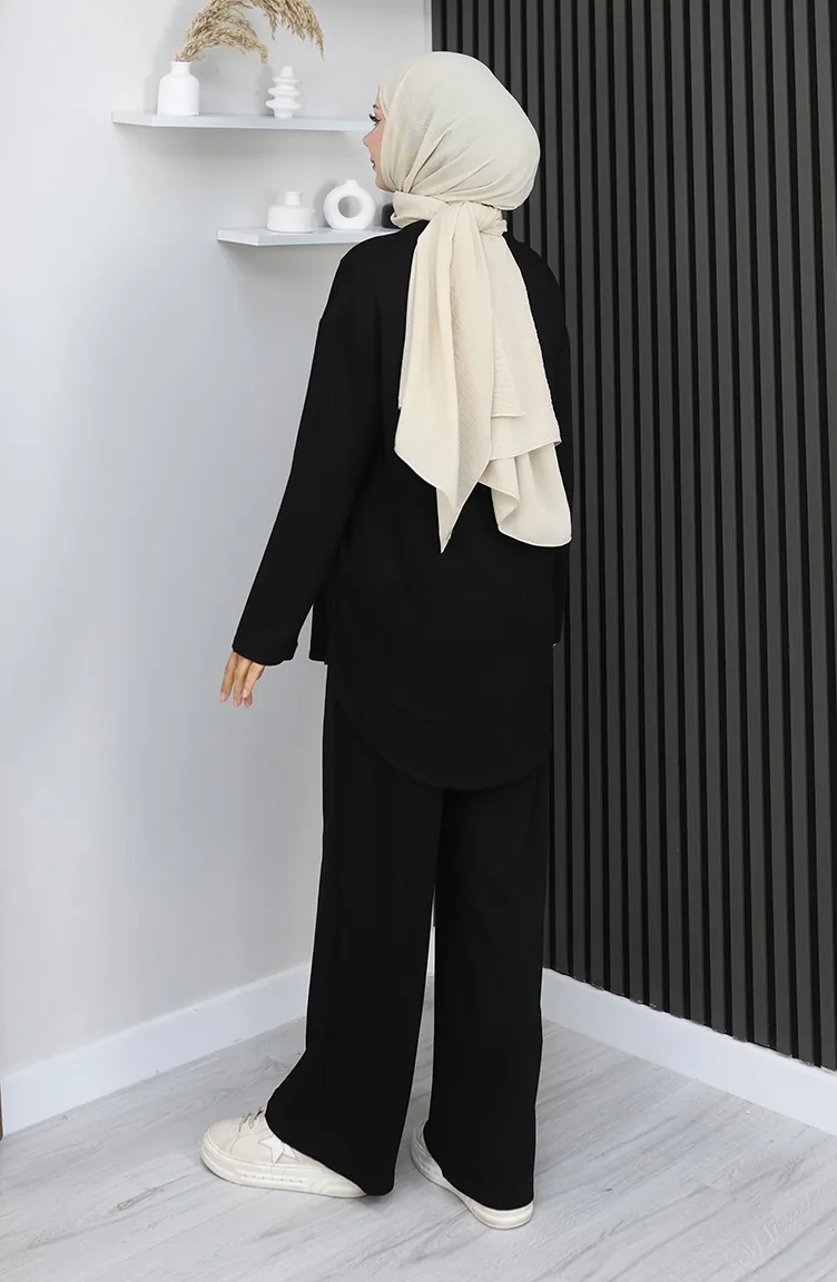 بدلة أويشو من قماش تونيك وبنطلون من قطعتين 2164-05 أسود 2164-05