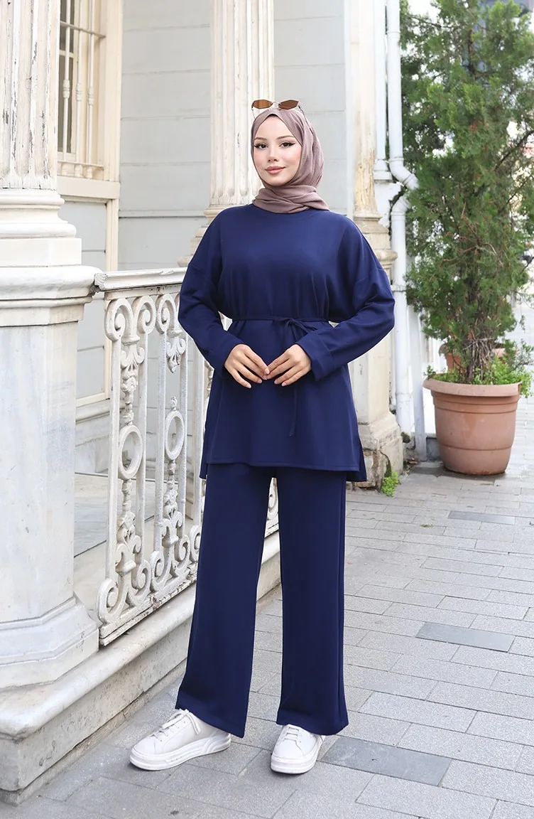 بدلة أويشو من قماش تونيك وبنطلون من قطعتين 2191-05 أزرق داكن 2191-05