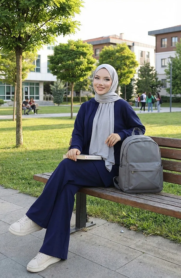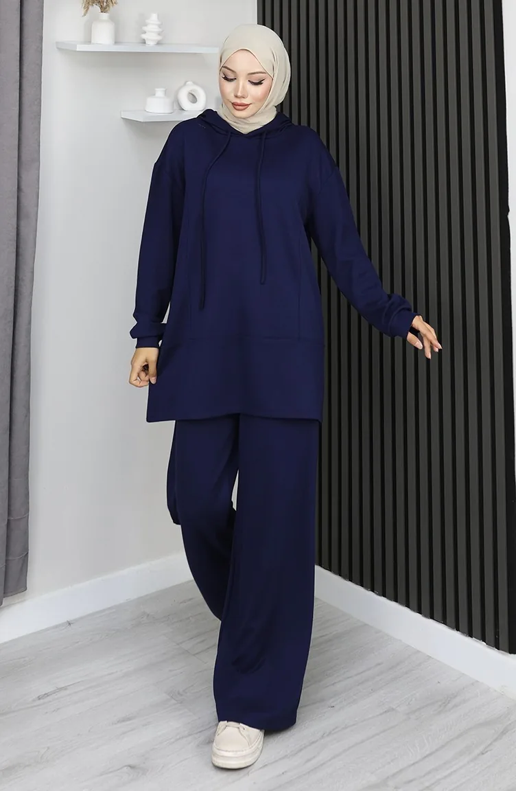 بدلة حجاب من قطعتين من قماش أويشو 2168-02 أزرق داكن 2168-02